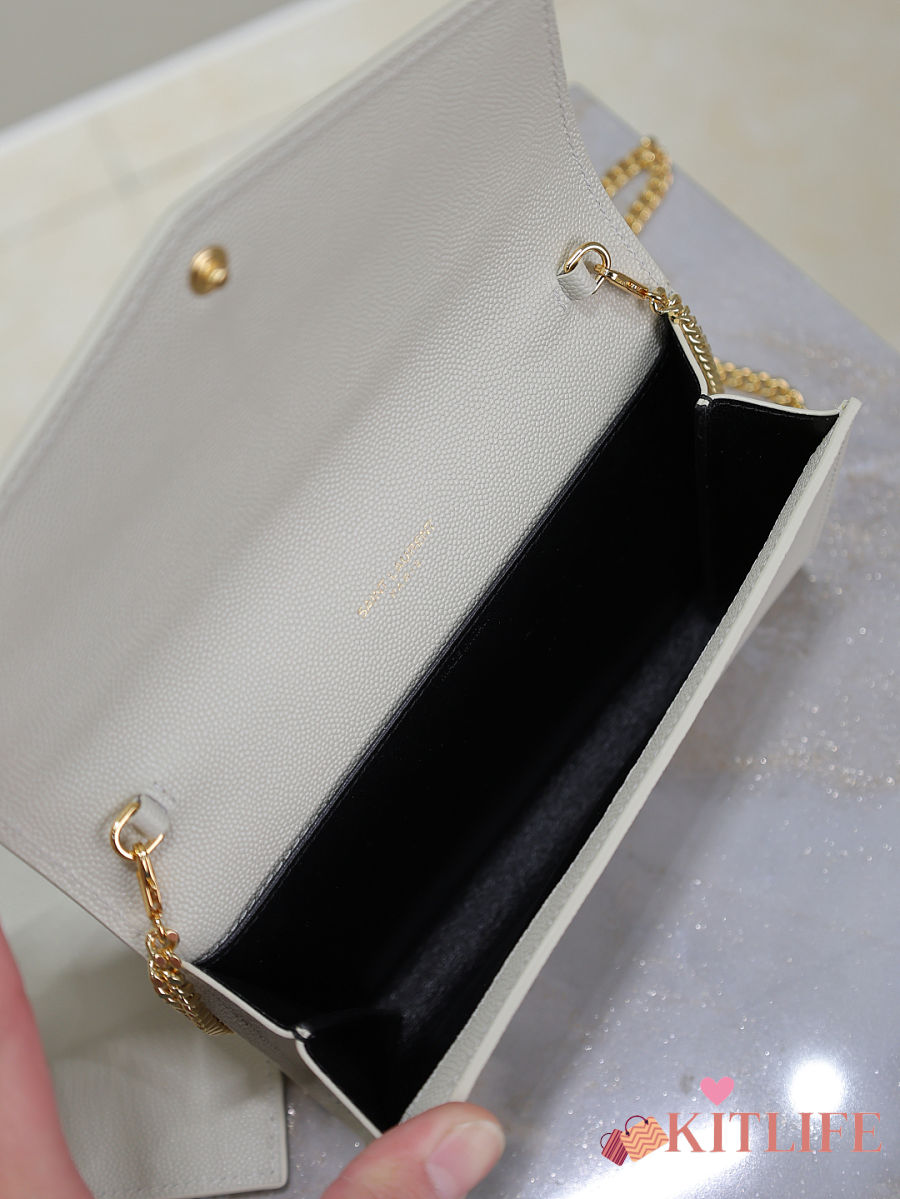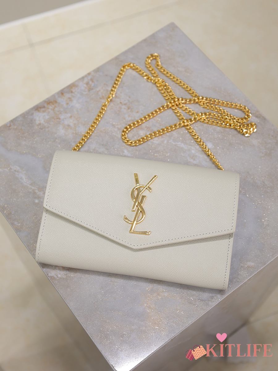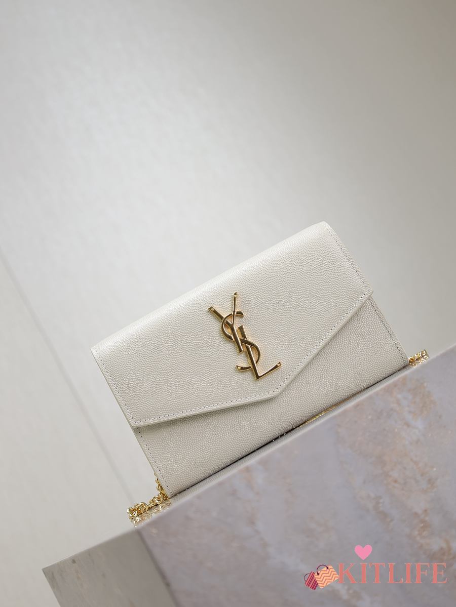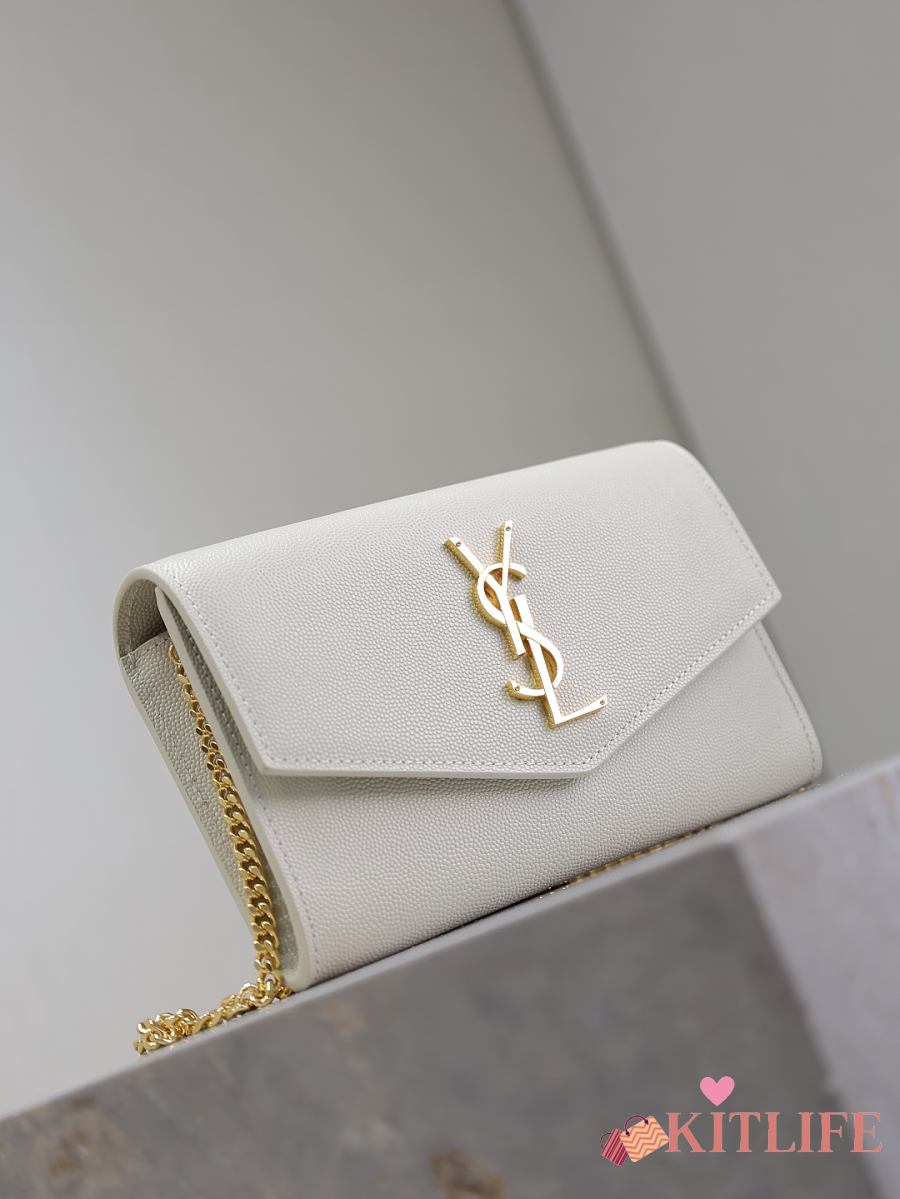 Kitlife Saint Laurent Uptown Chain Wallet in White Grained Leather 607788 19x12x4cm