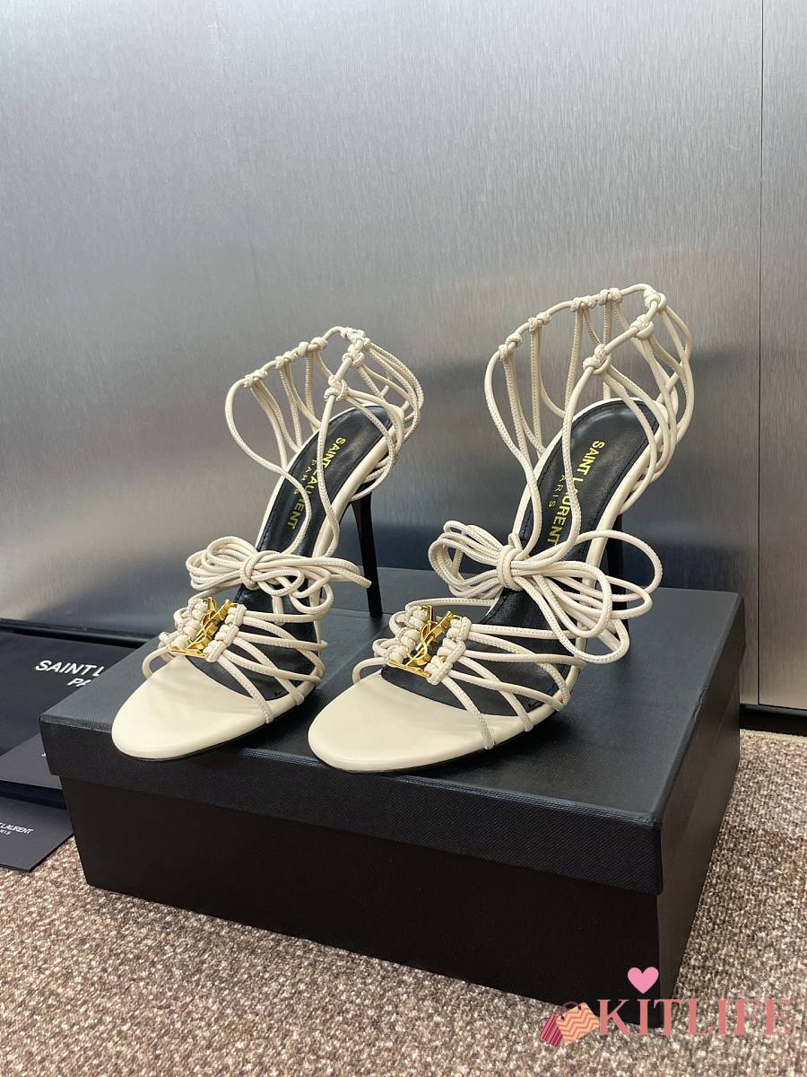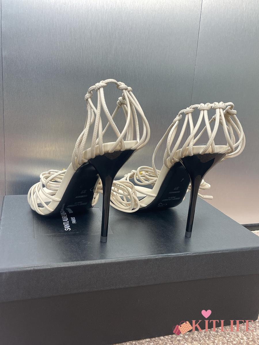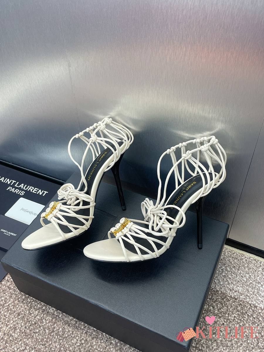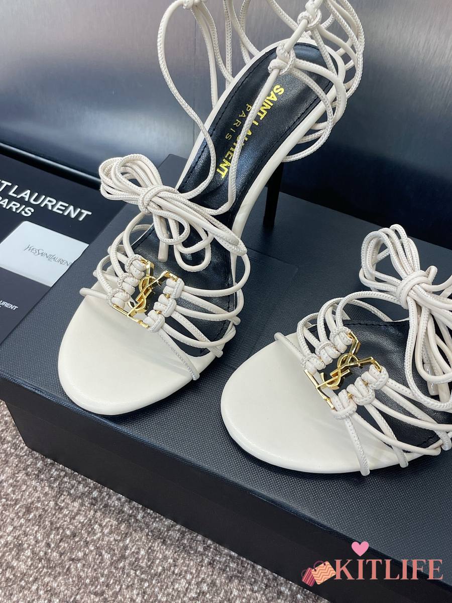 Kitlife Saint Laurent Women's White Leather Heel Sandals 9cm