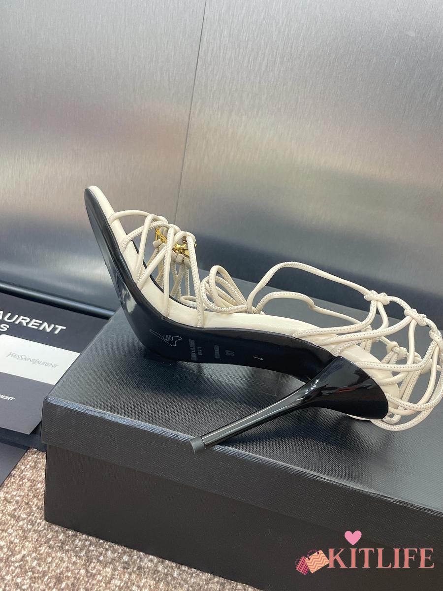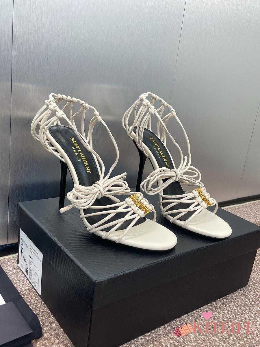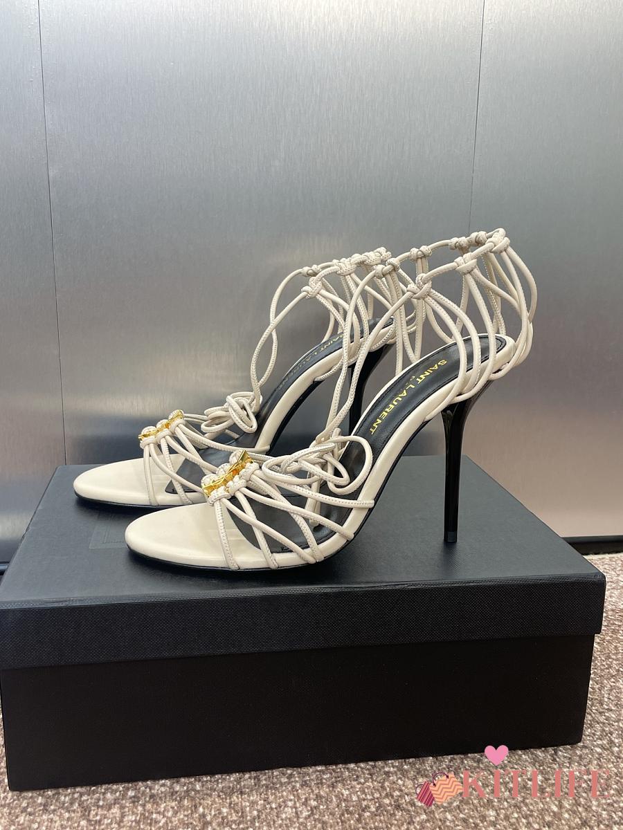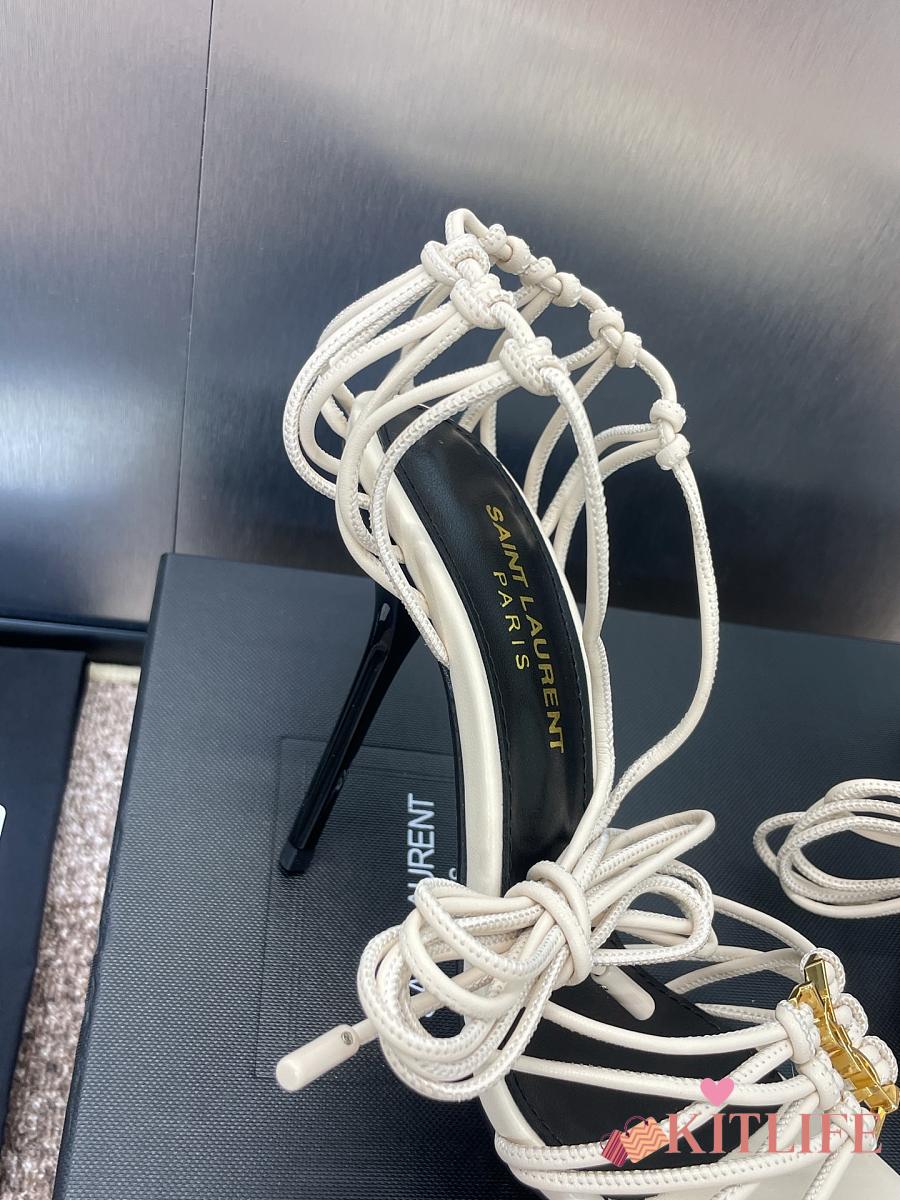 Kitlife Saint Laurent Women's White Leather Heel Sandals 9cm