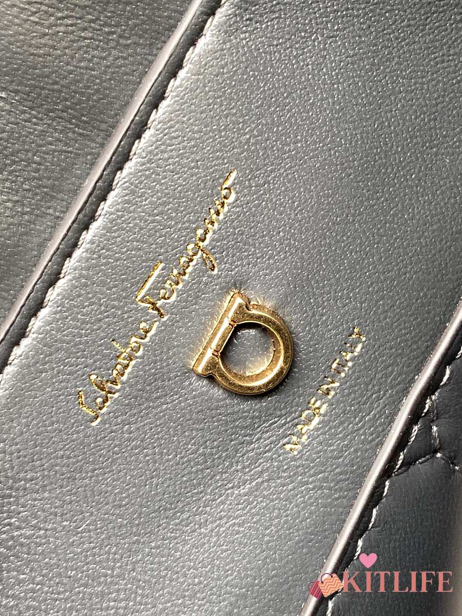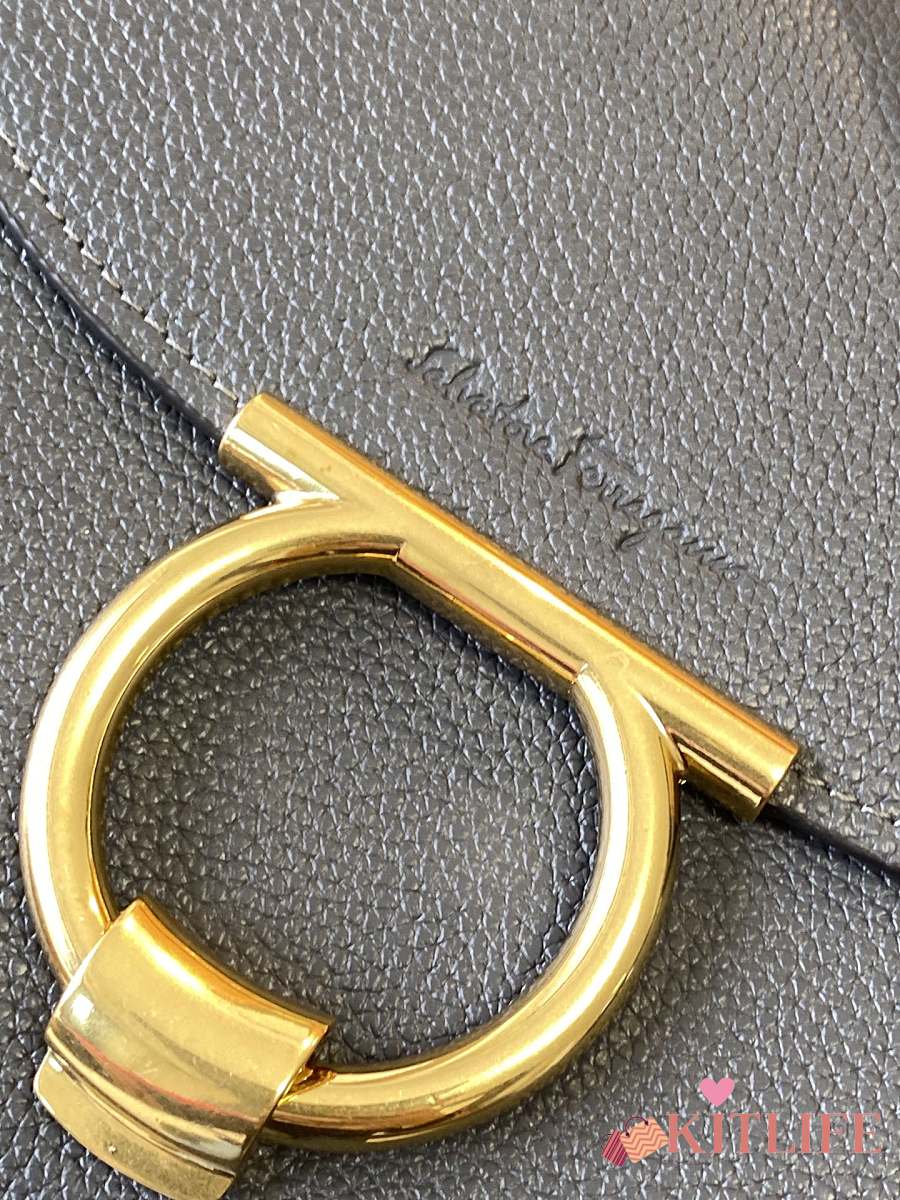 Kitlife Salvatore Ferragamo Margot Medium Grey Leather Shoulder Bag 26x20x12cm