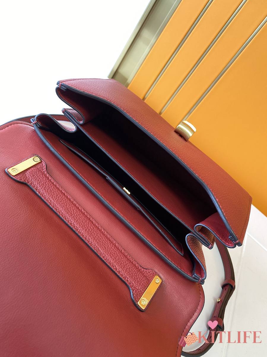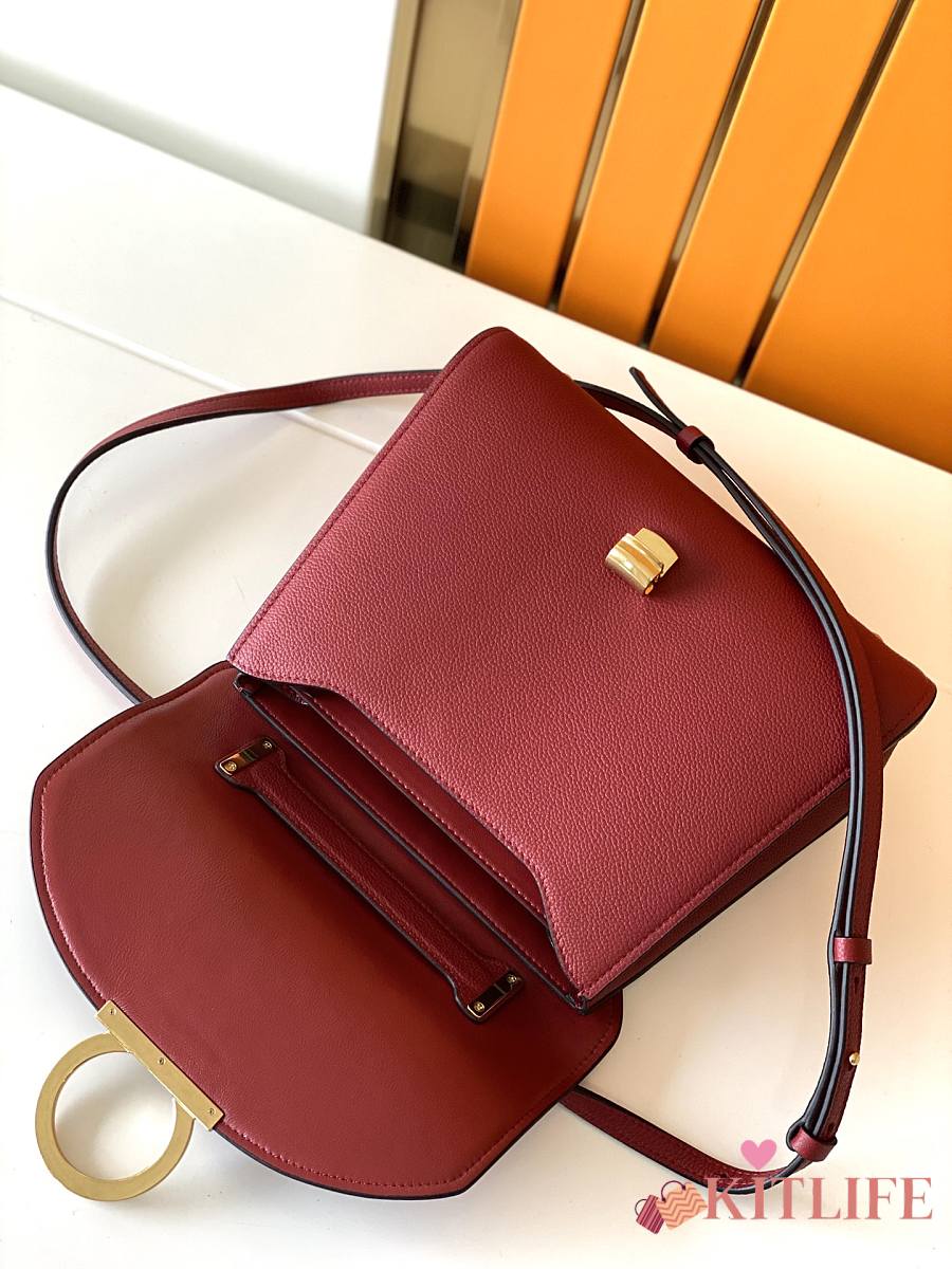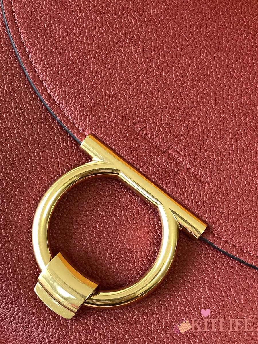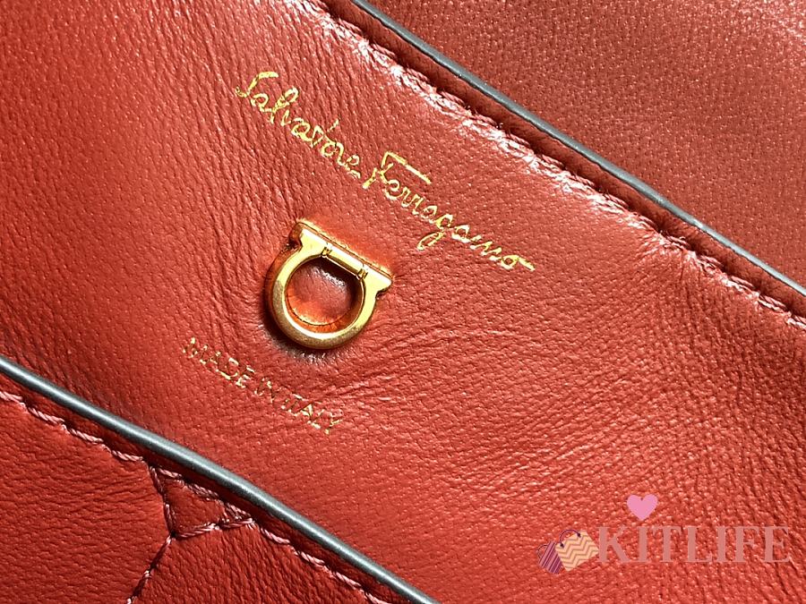 Kitlife Salvatore Ferragamo Margot Medium Red Leather Shoulder Bag 26x20x12cm