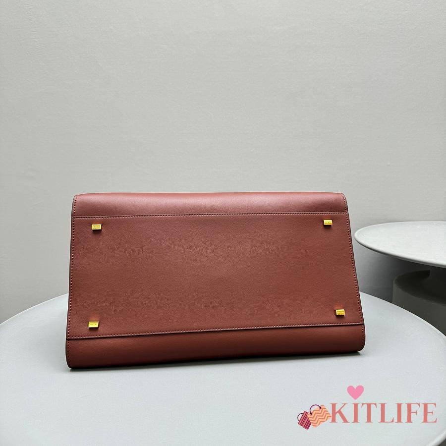 Kitlife The Row Margaux 15 Brick Brown Leather Tote Bag 38.5x16x30cm
