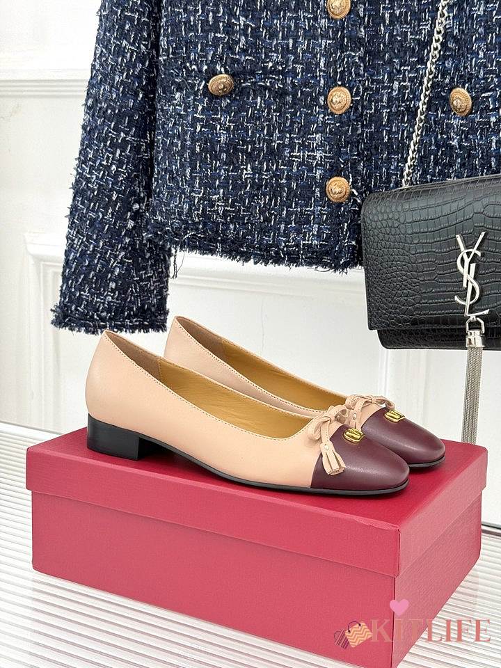 Kitlife Valentino 2025 Bow-Tie Color-Blocked Shoes Beige and Dark Brown