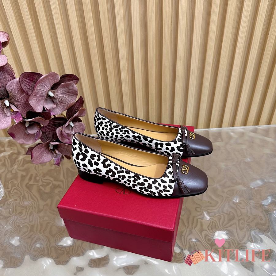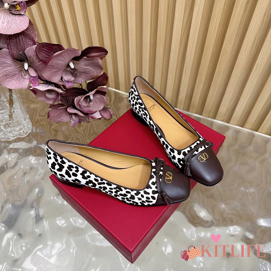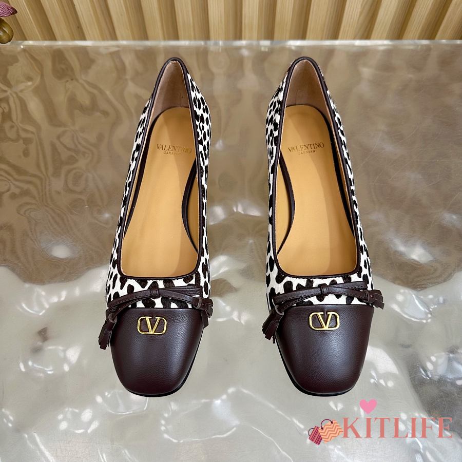 Kitlife Valentino 2025 Bow-Tie Color-Blocked Shoes Leopard-Print and Dark Brown