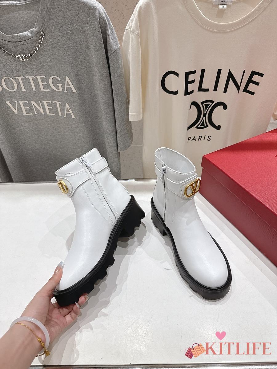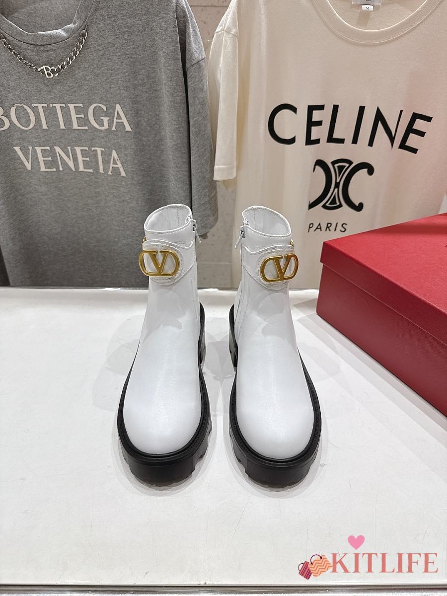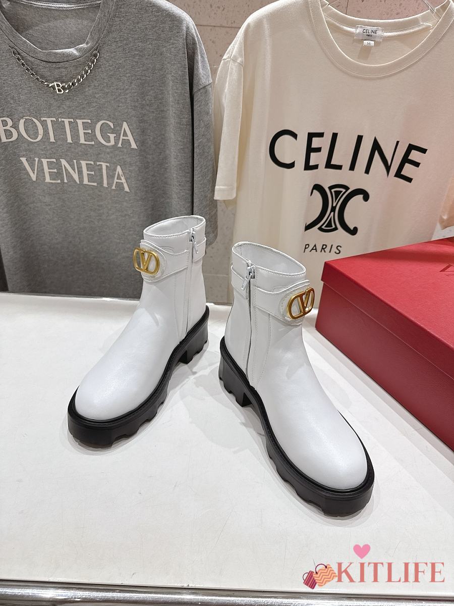 Kitlife Valentino Garavani 55mm VLogo Signature Buckle-fastening Ankle Boots White