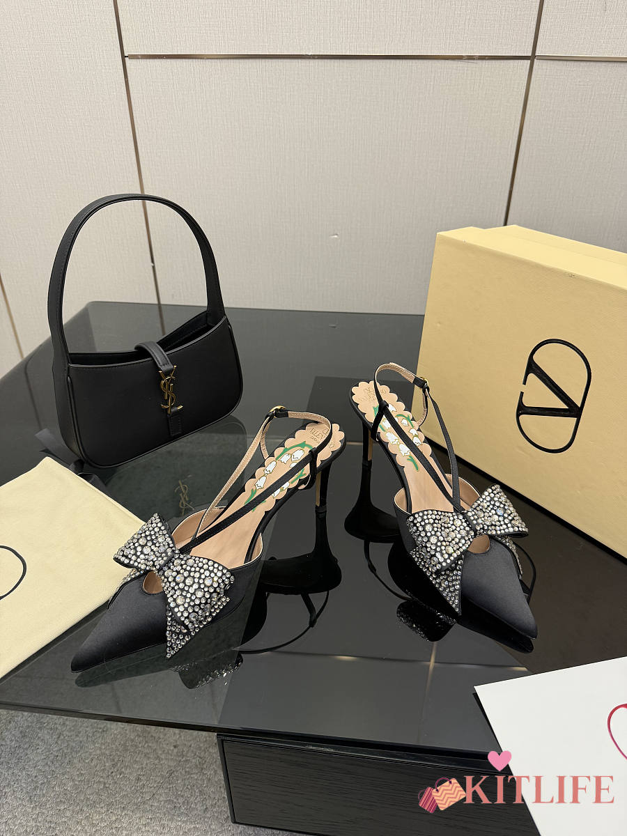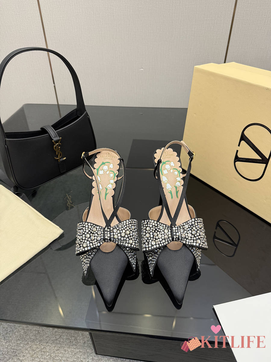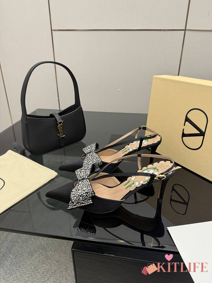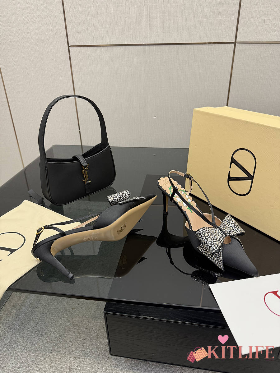 Kitlife Valentino Garavani Bow Embellished Satin Slingback Pumps Black