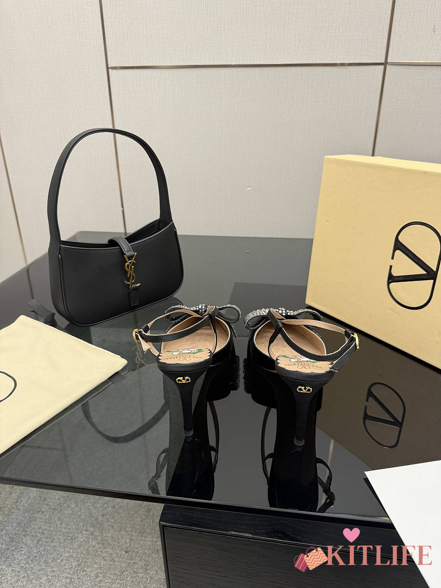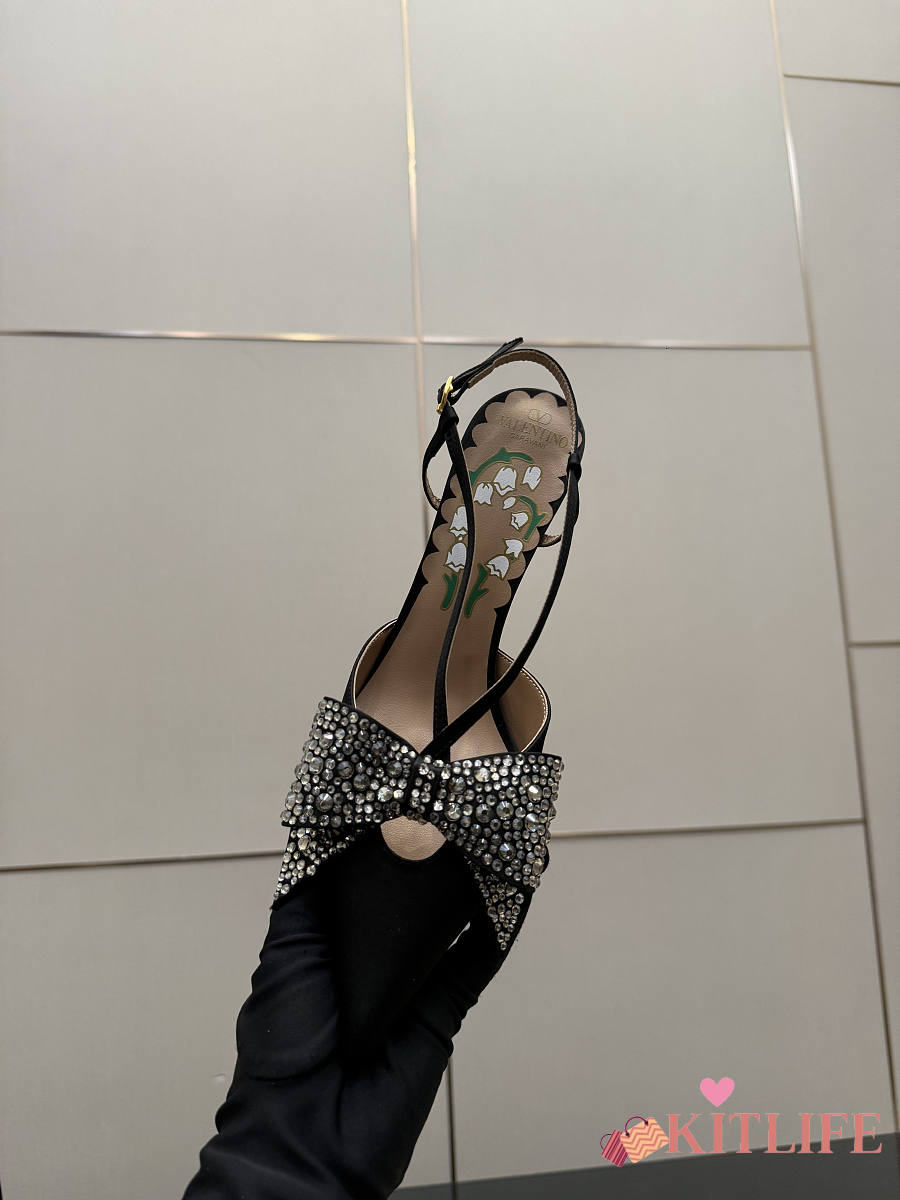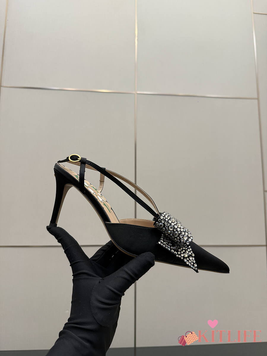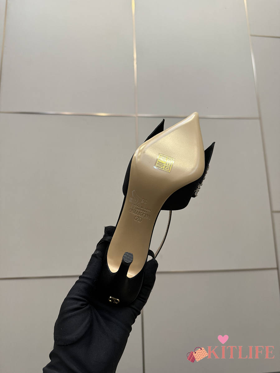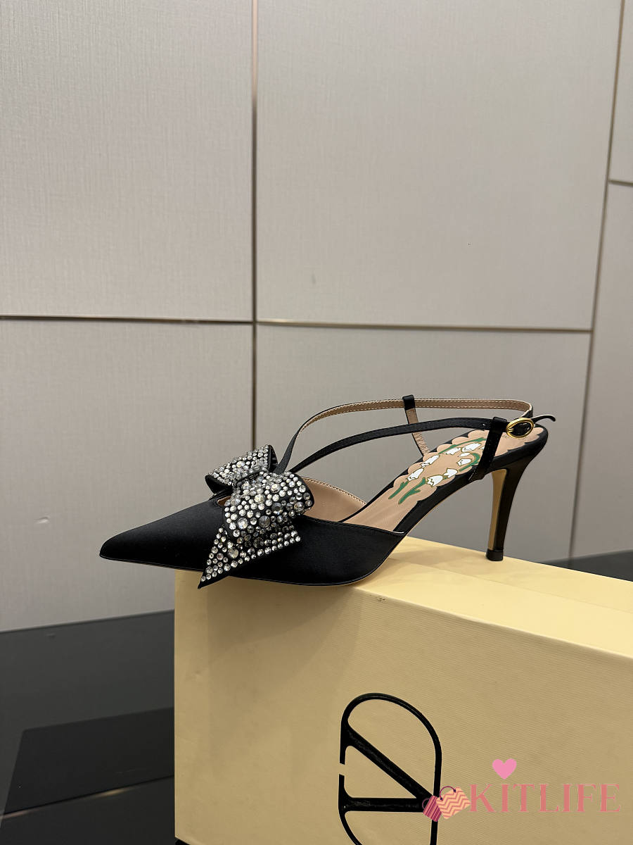 Kitlife Valentino Garavani Bow Embellished Satin Slingback Pumps Black