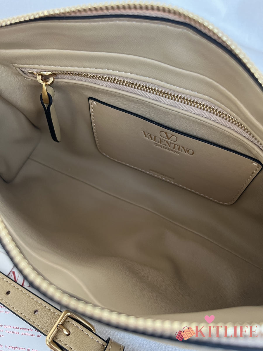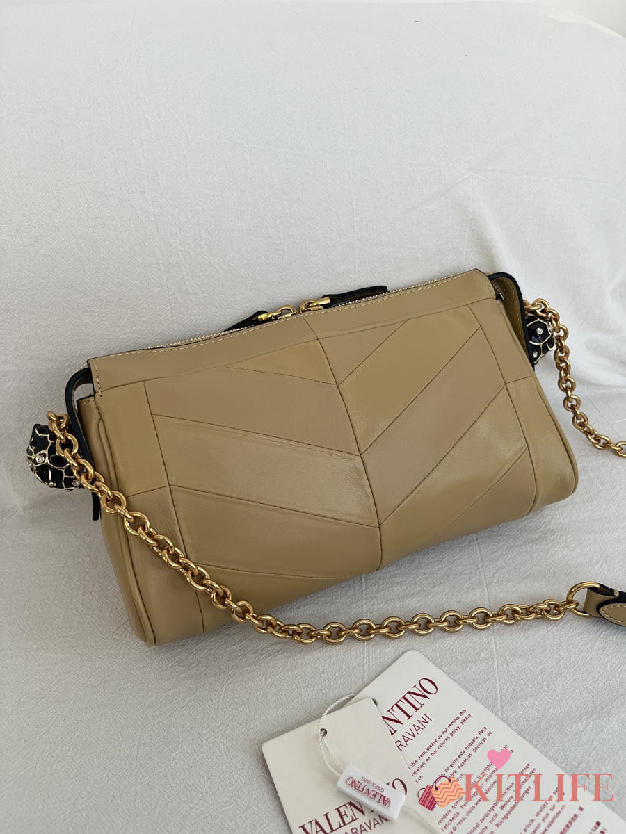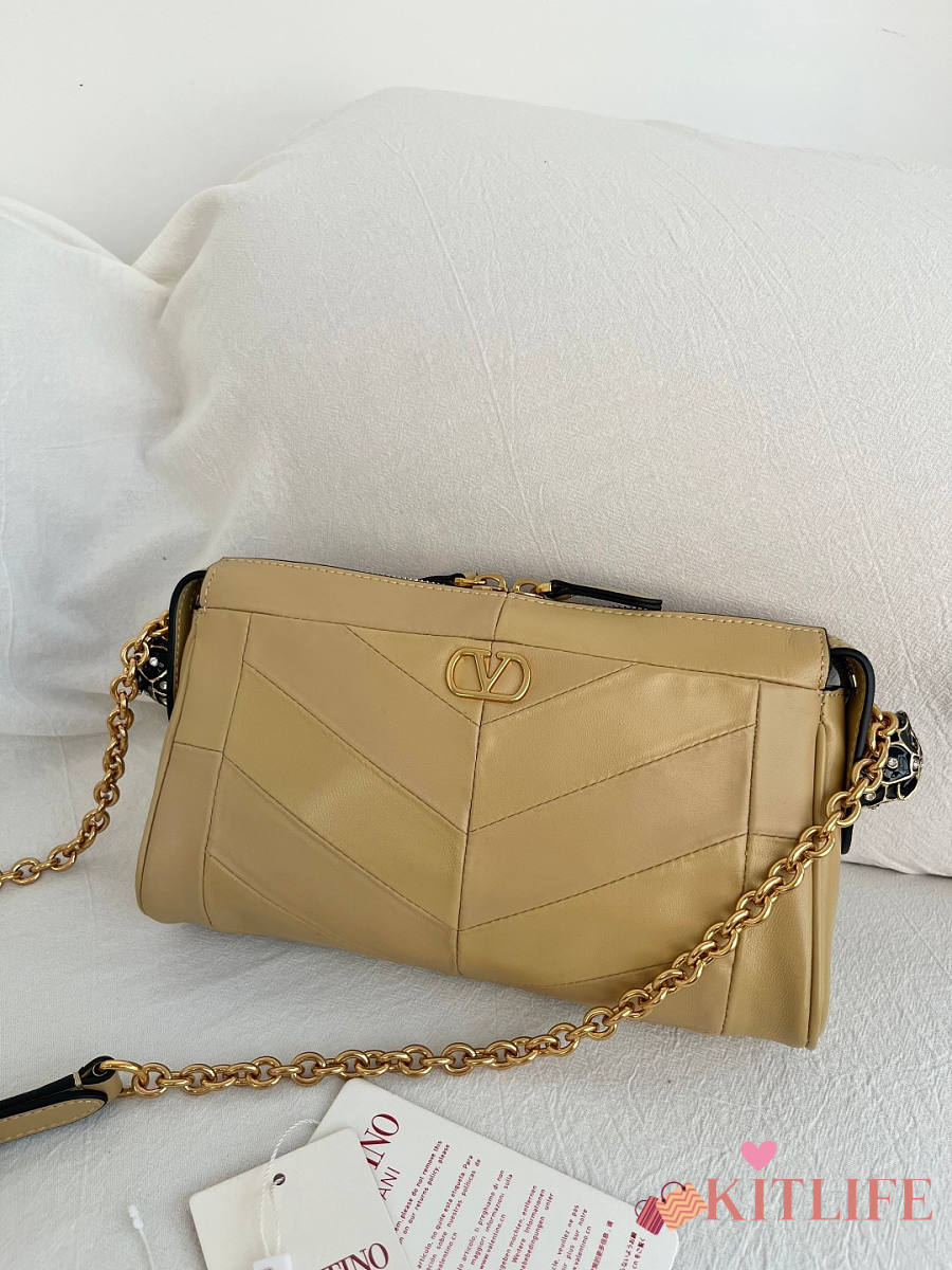 Kitlife Valentino Garavani Panthea Shoulder Bag In Beige Nappa Leather With A Chevron Pattern 24x14x6cm