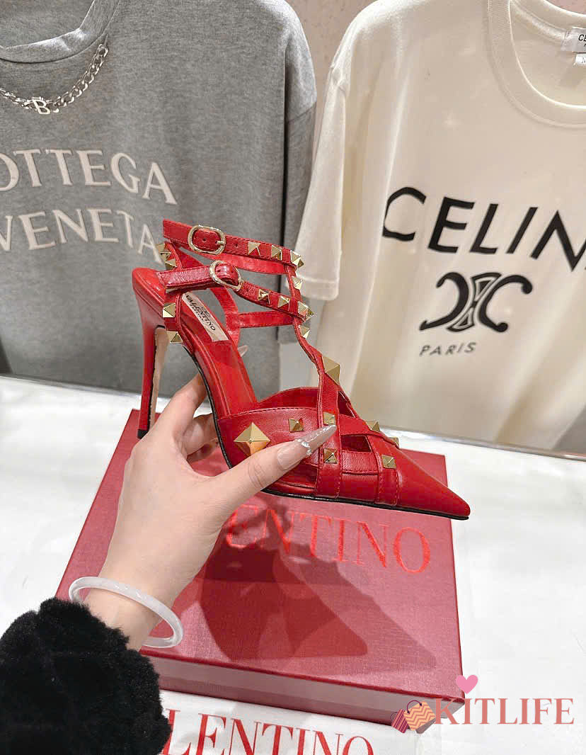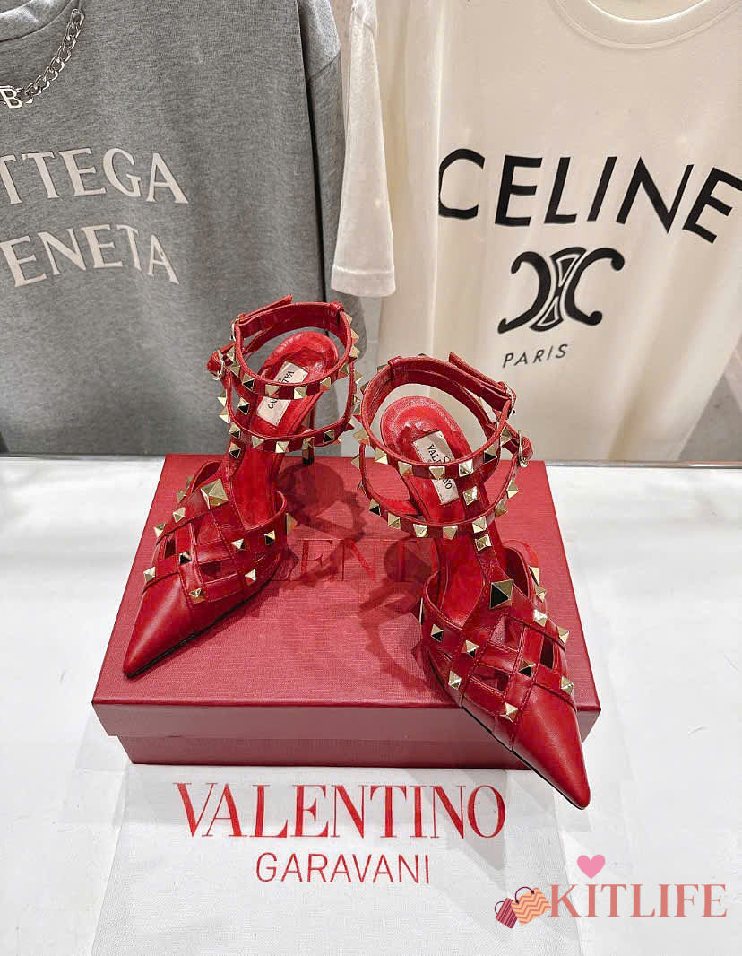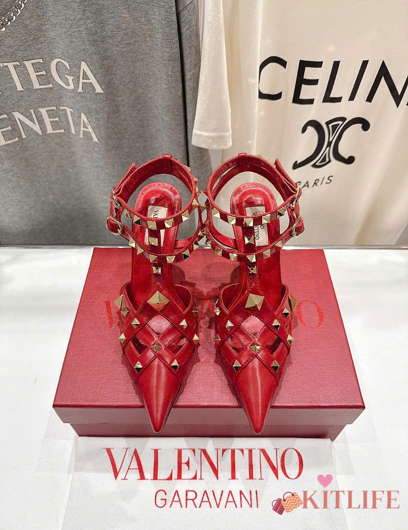 Kitlife Valentino Garavani Studdy Kidskin Pumps Red