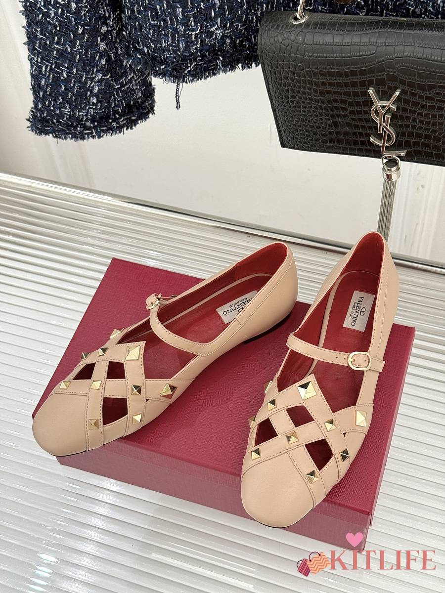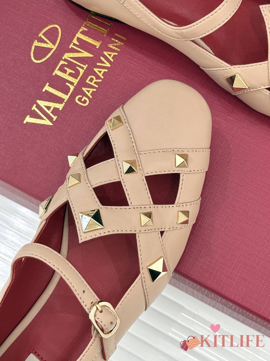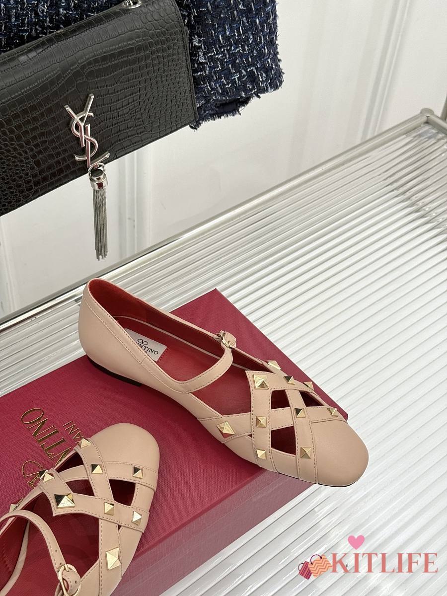 Kitlife Valentino Garavani Studdy Rockstud Ballet Flats Beige