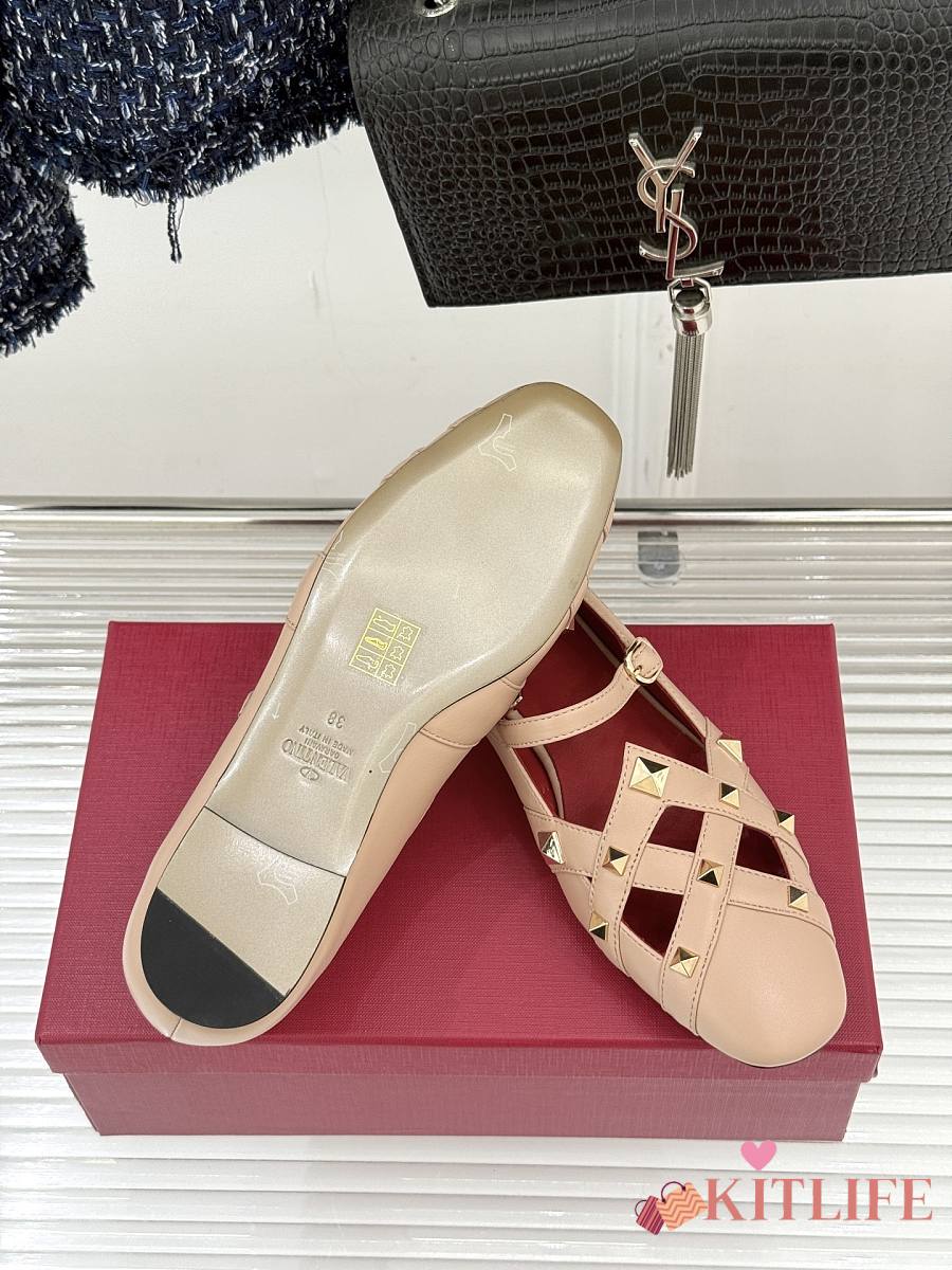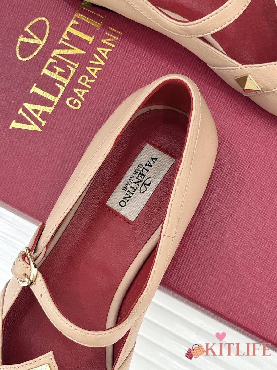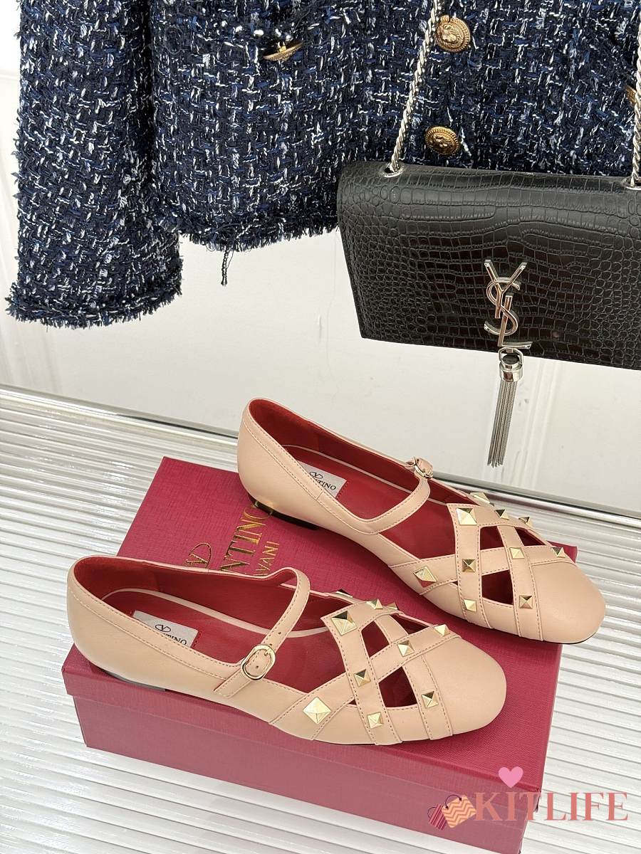 Kitlife Valentino Garavani Studdy Rockstud Ballet Flats Beige