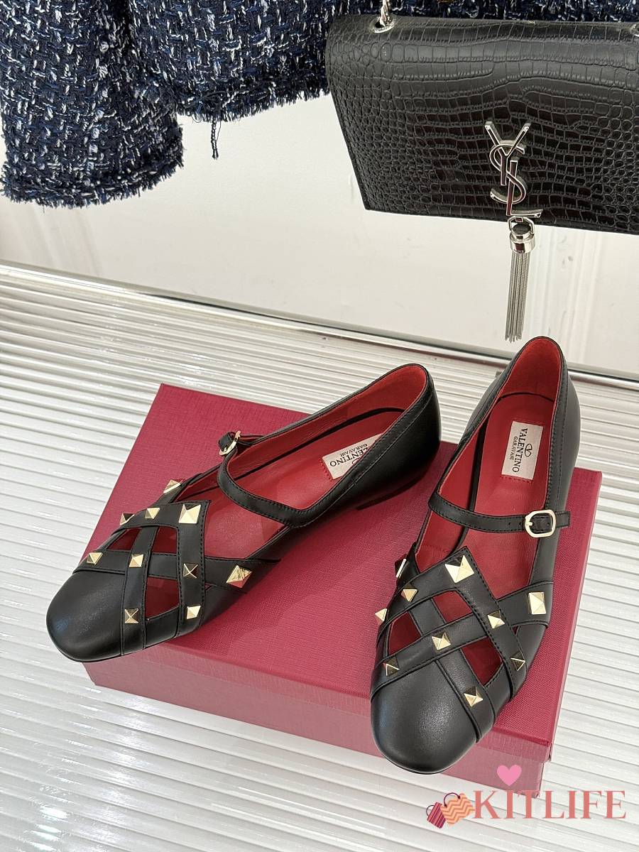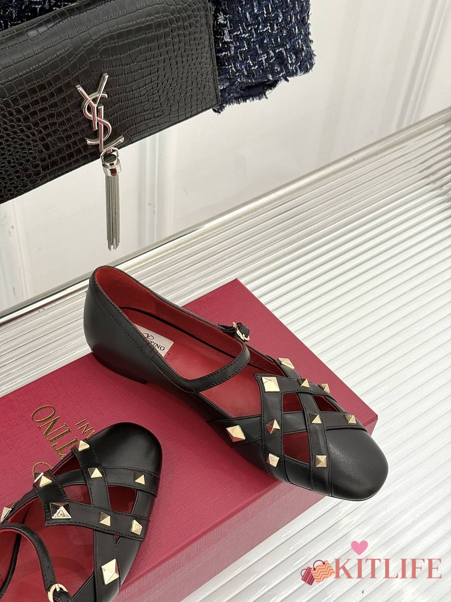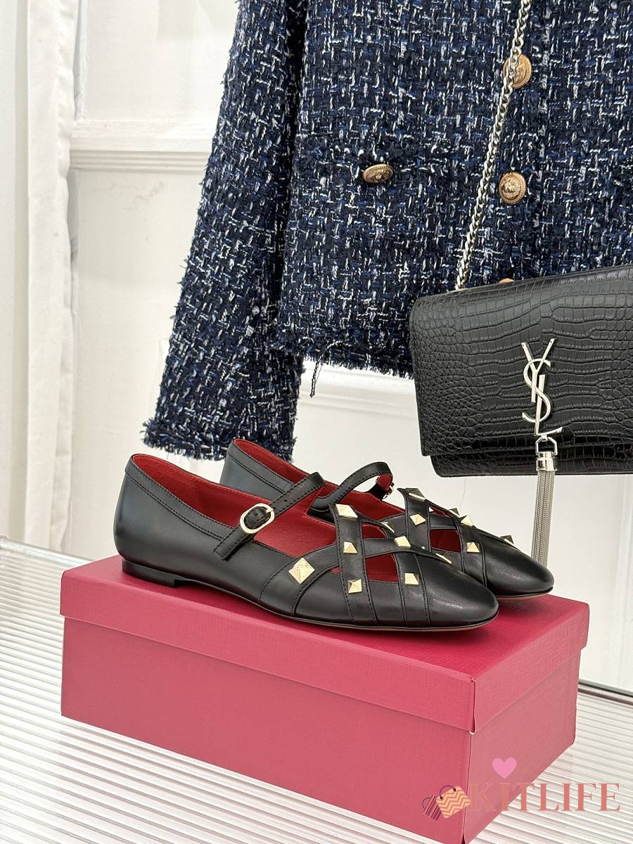 Kitlife Valentino Garavani Studdy Rockstud Ballet Flats Black