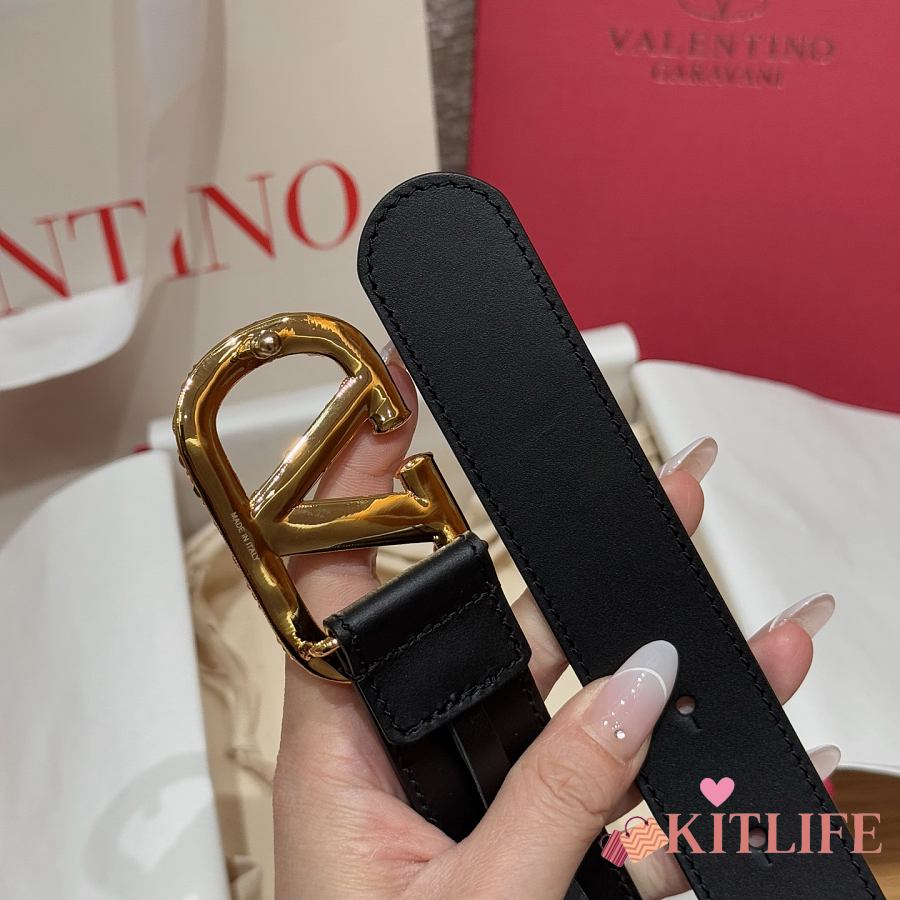 Kitlife Valentino Garavani Calfskin Vlogo Signature Belt Black 3.4cm