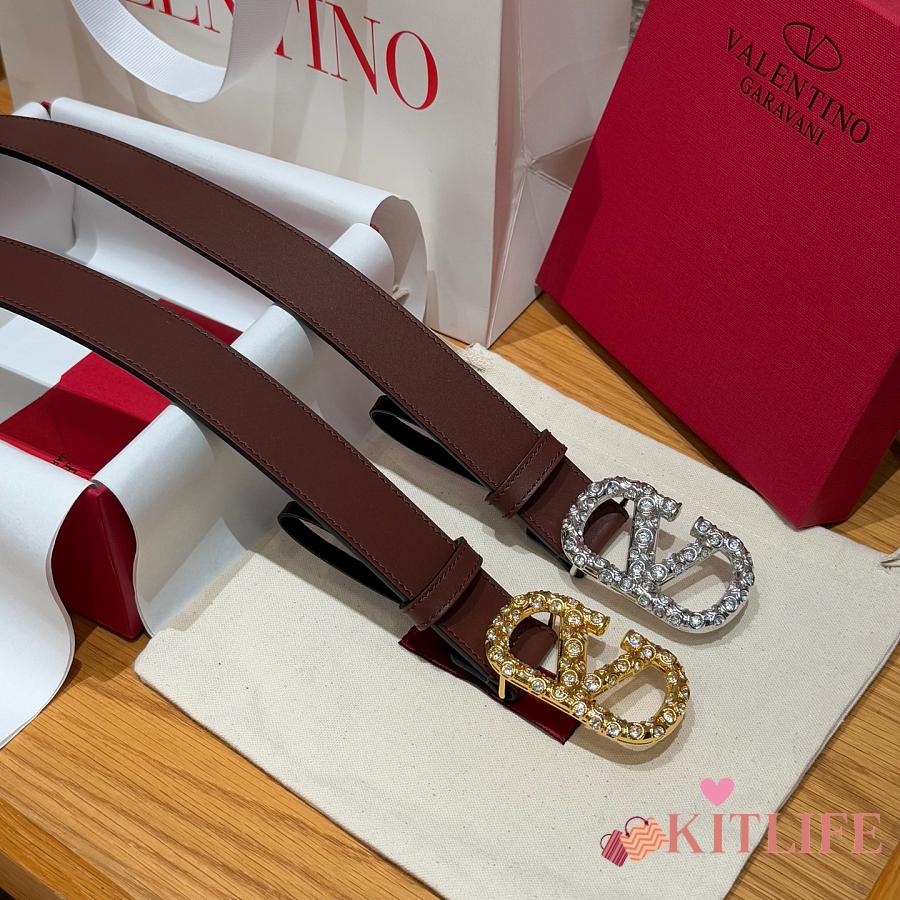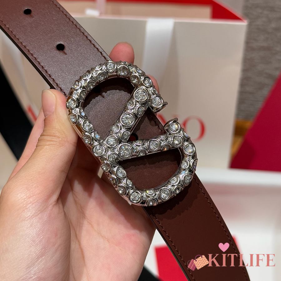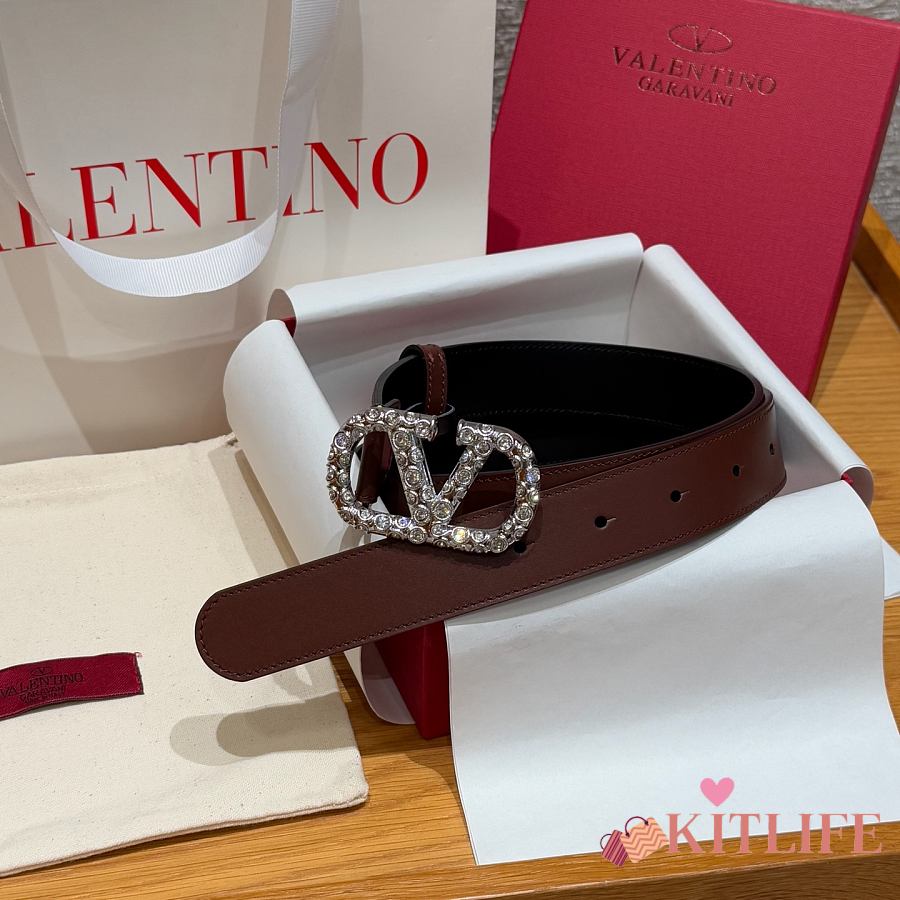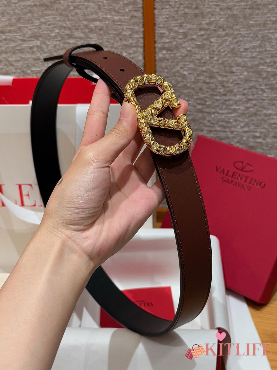 Kitlife Valentino Garavani VLogo Signature Belt In Brown Shiny Calfskin With Crystals 30mm
