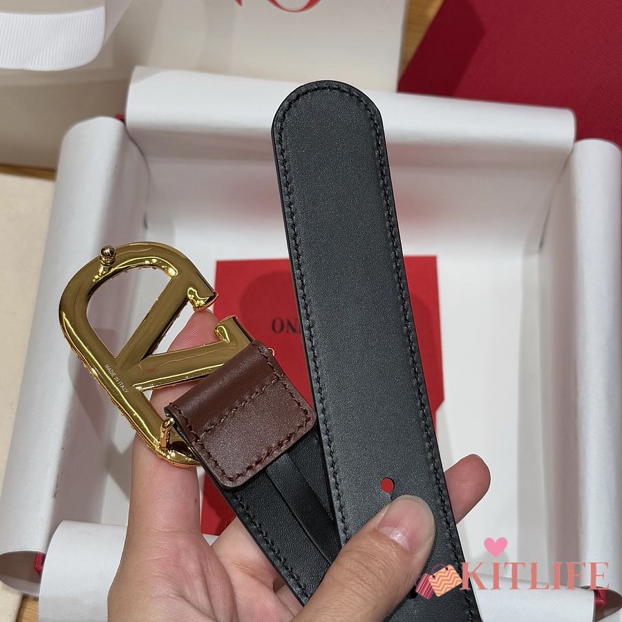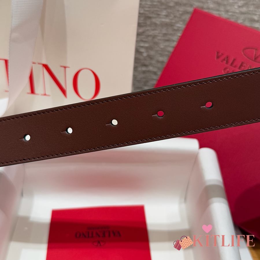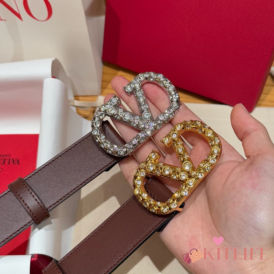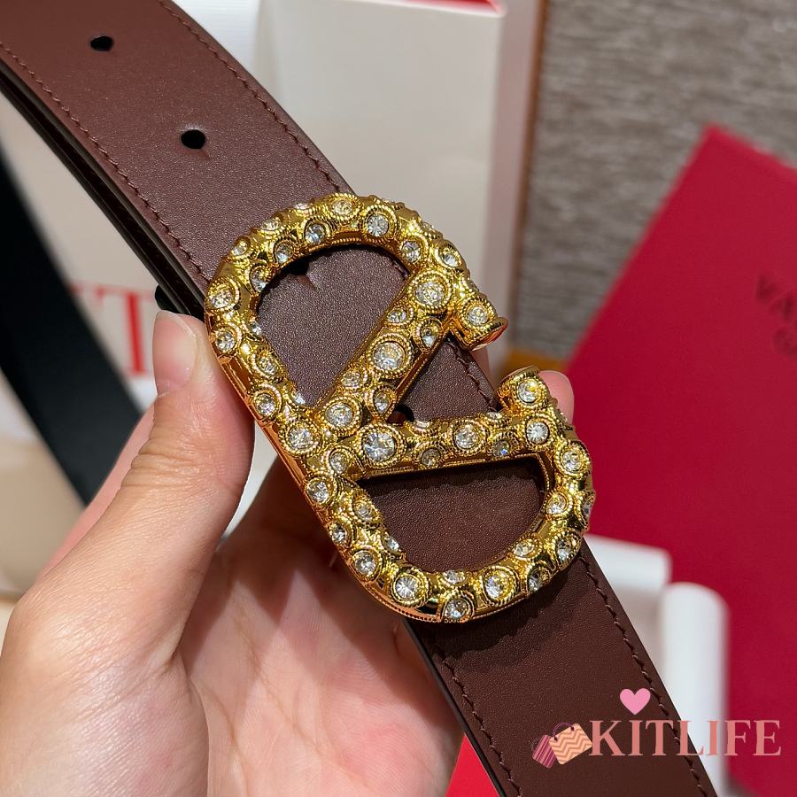 Kitlife Valentino Garavani VLogo Signature Belt In Brown Shiny Calfskin With Crystals 30mm