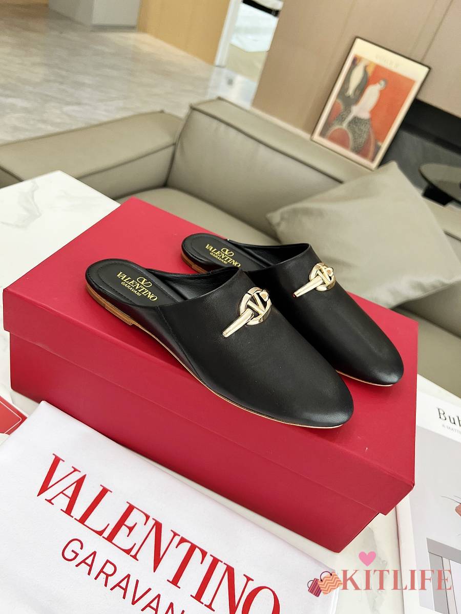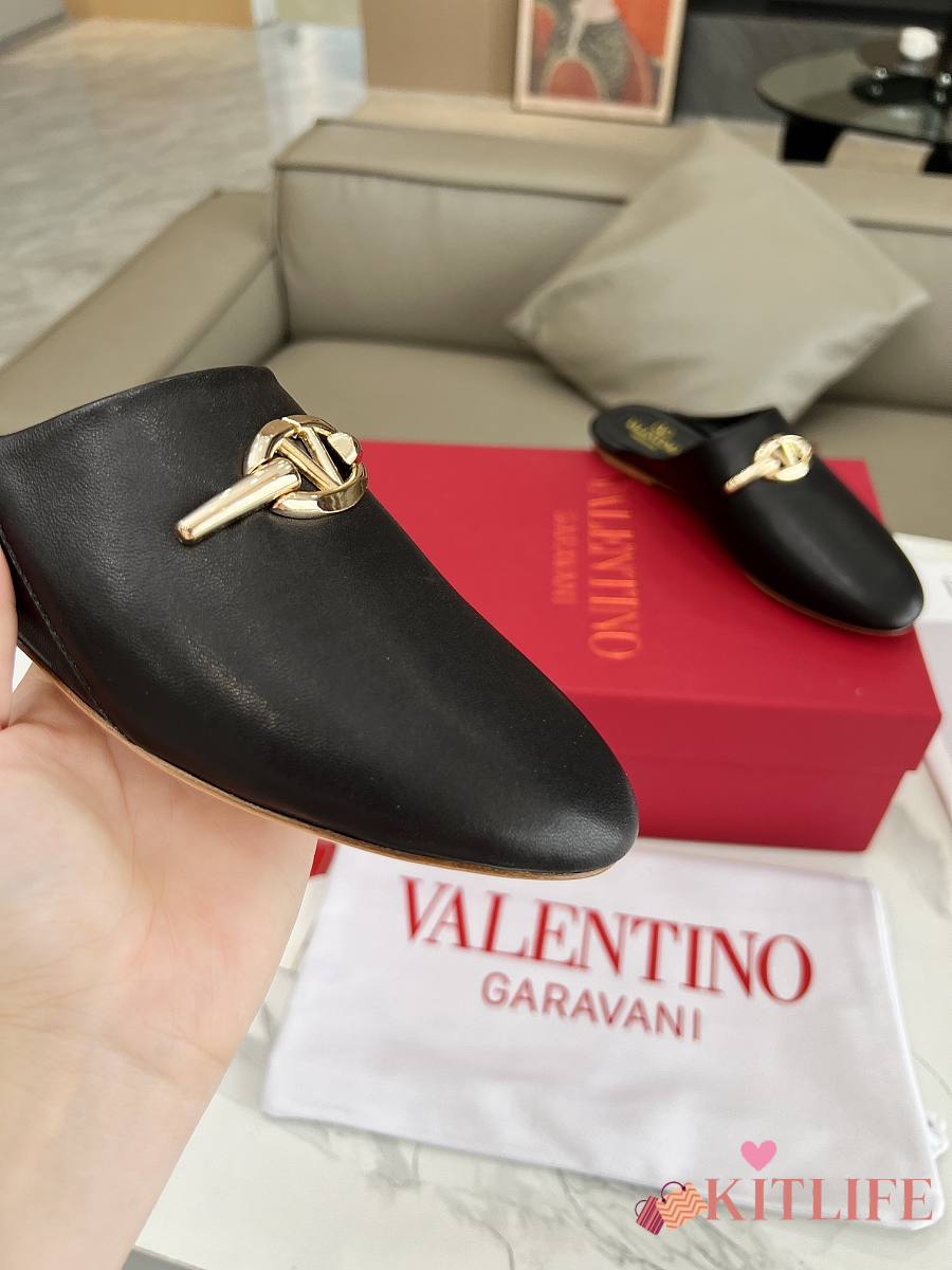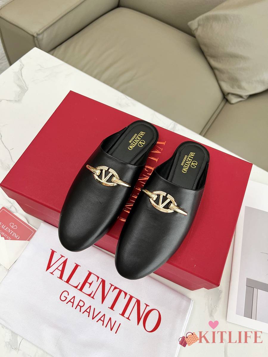 Kitlife Valentino VLogo Gate Black Leather Loafers