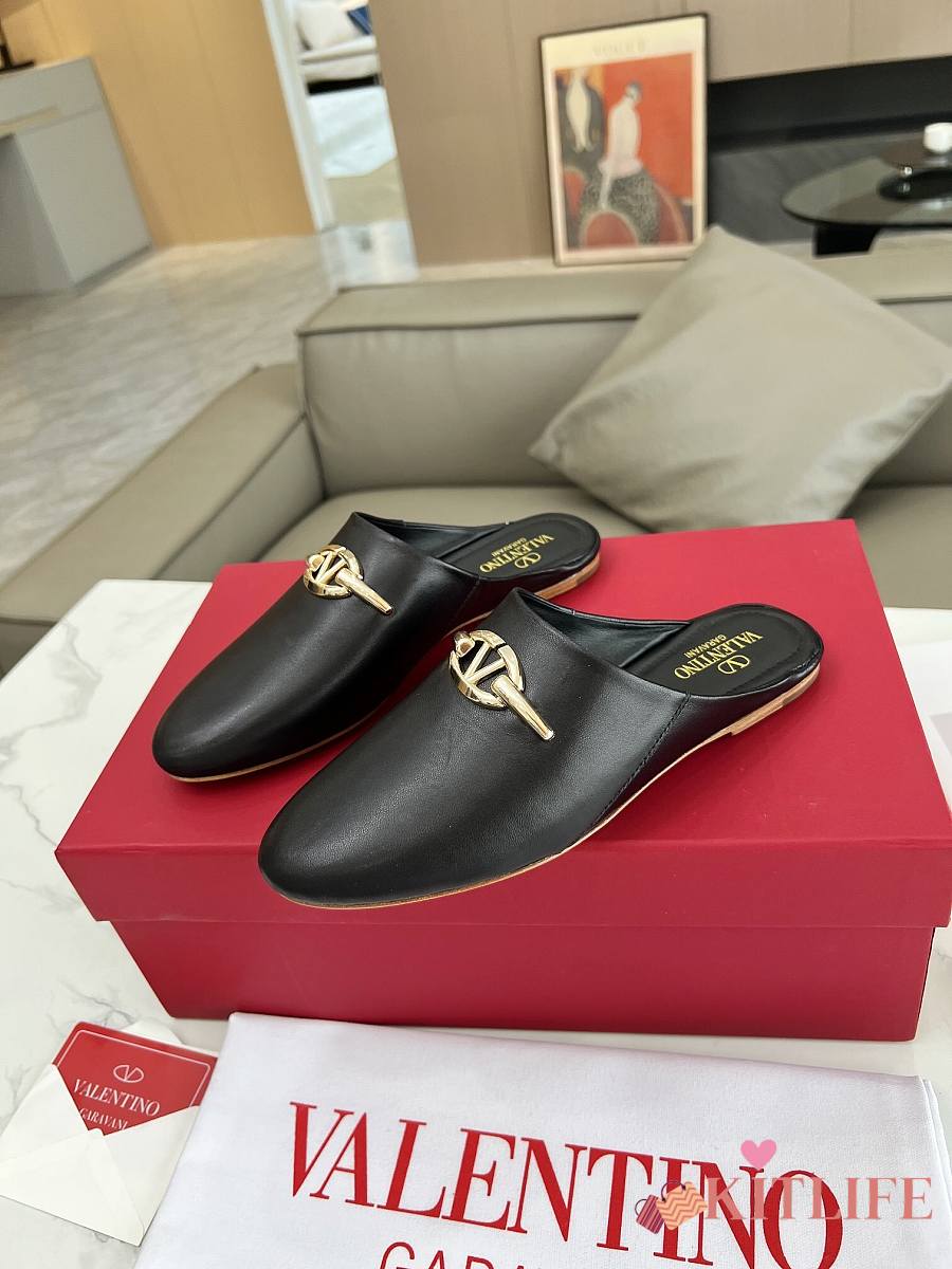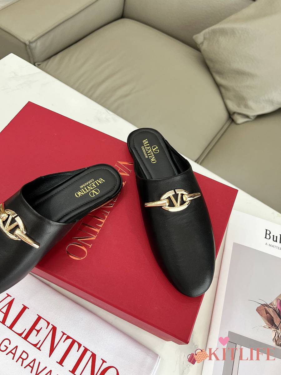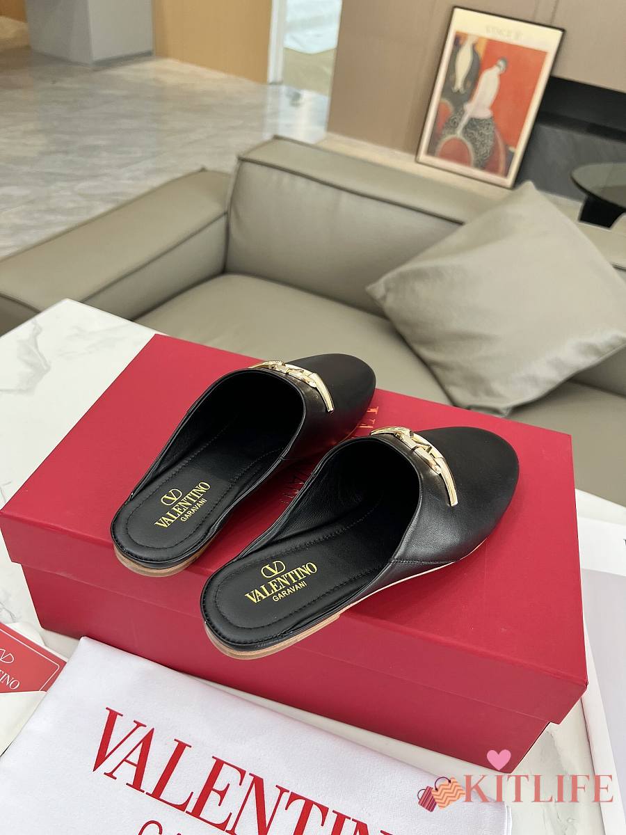 Kitlife Valentino VLogo Gate Black Leather Loafers