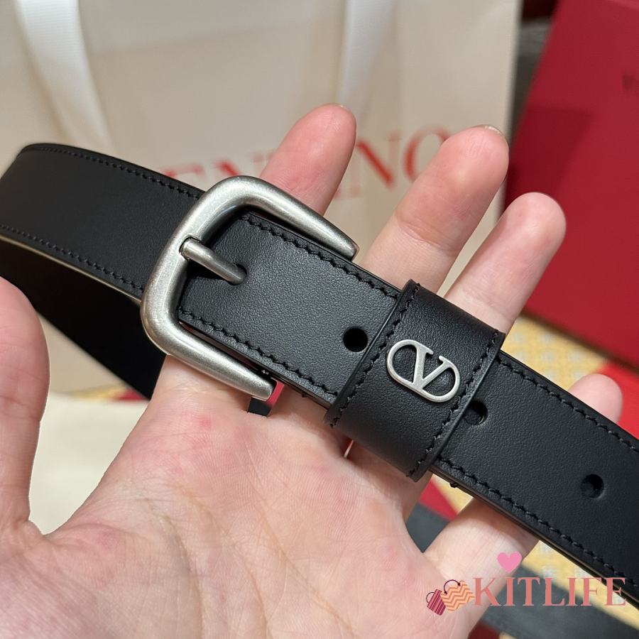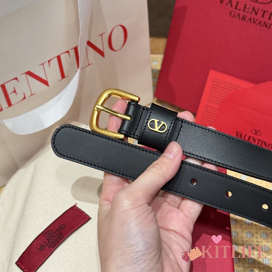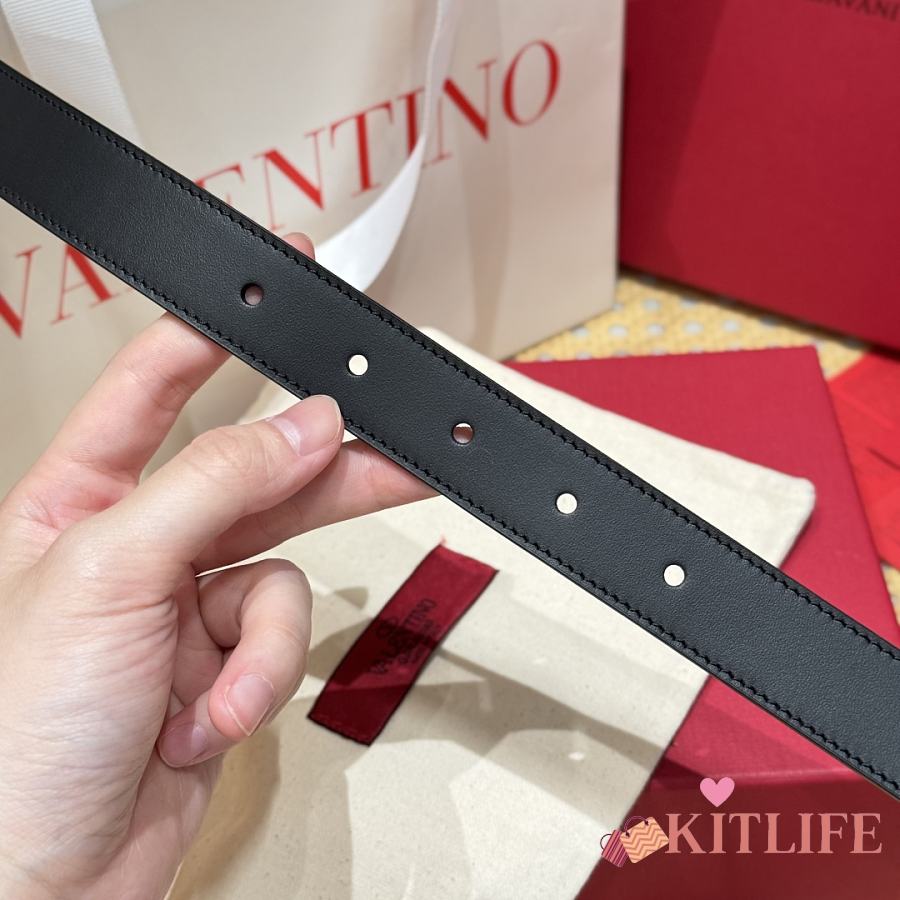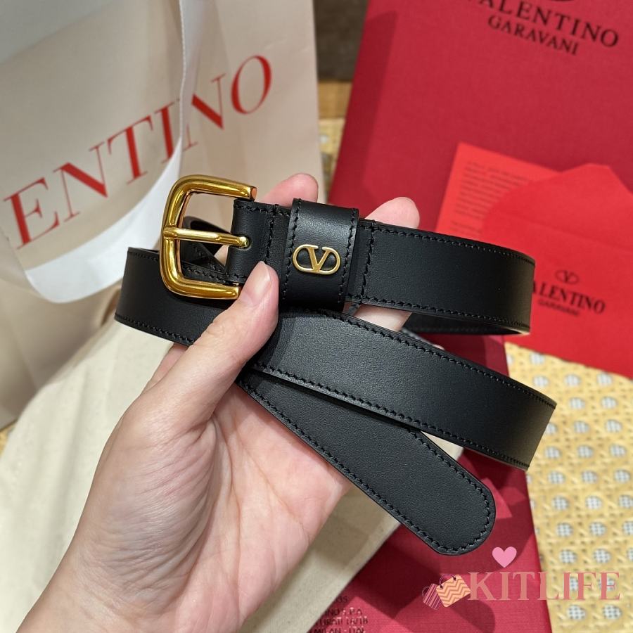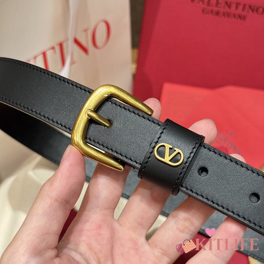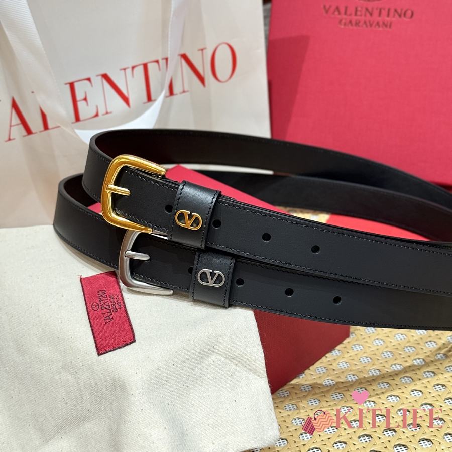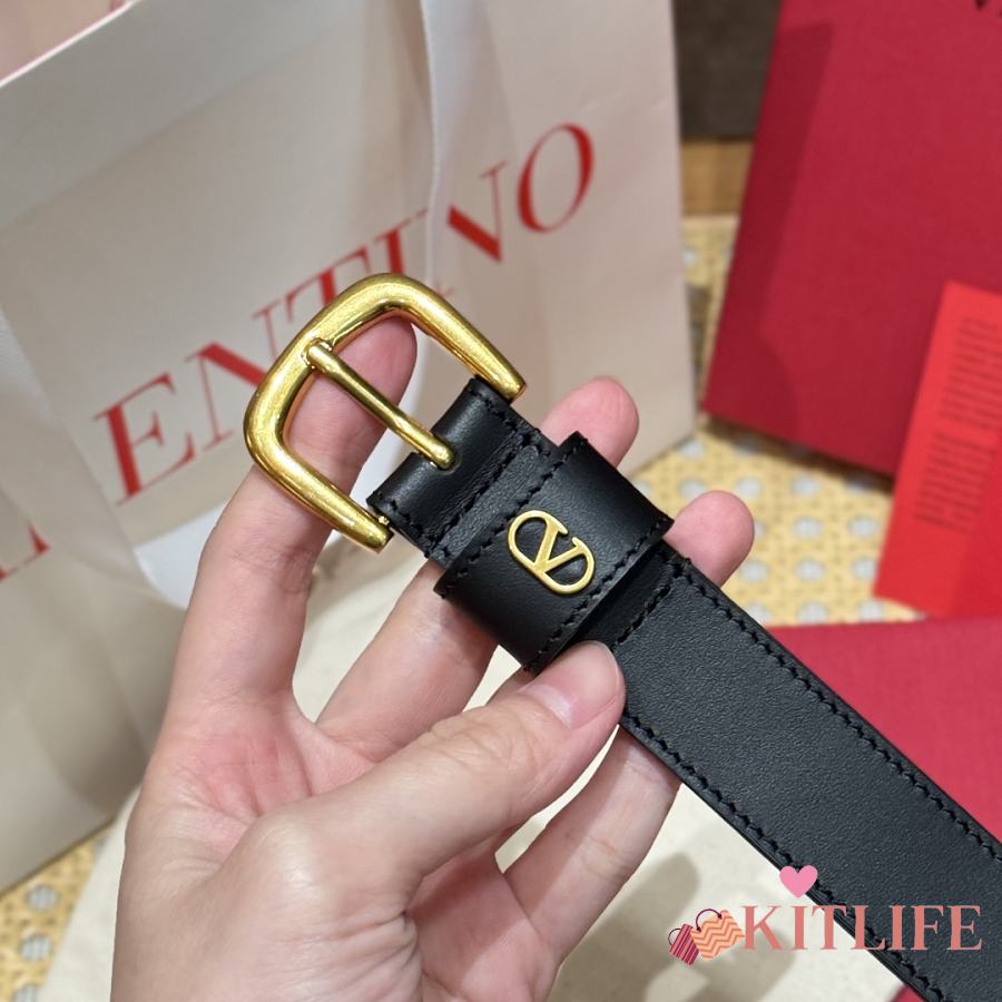 Kitlife Valentino Vlogo Signature Belt Black With Gold / Silver Hardware 2.5cm