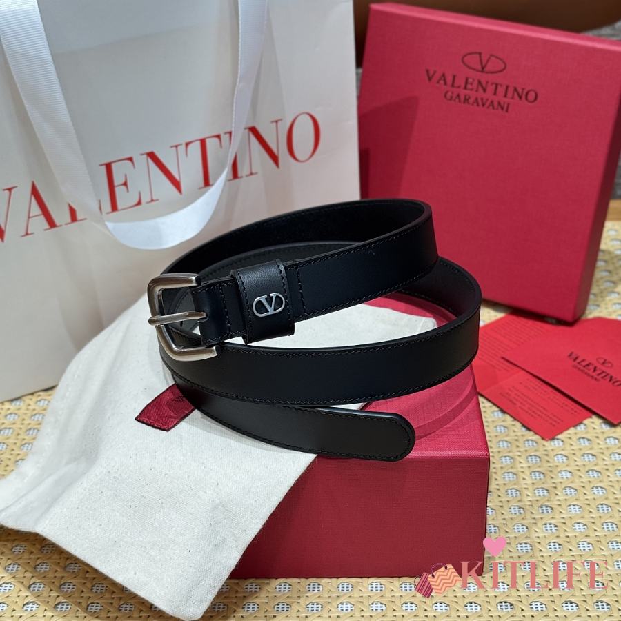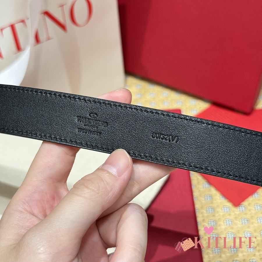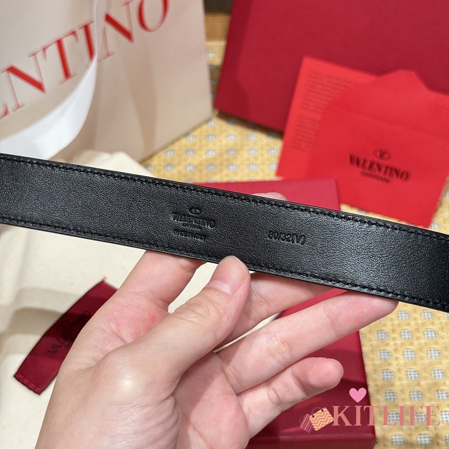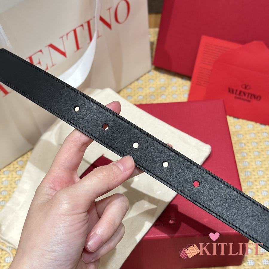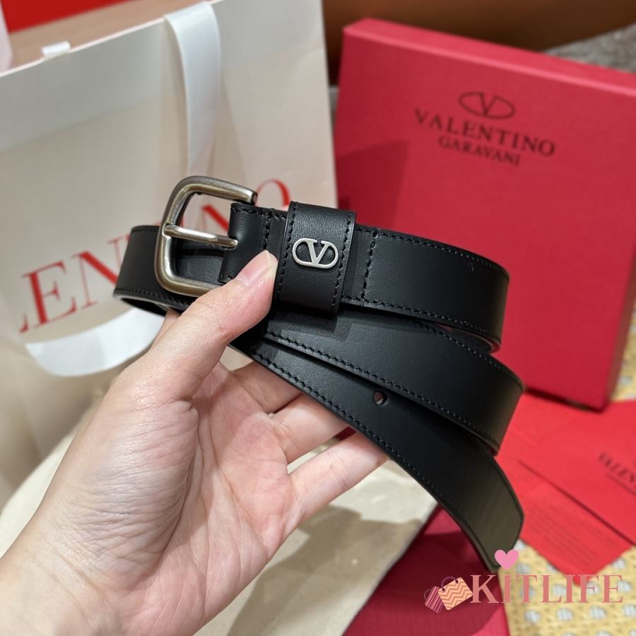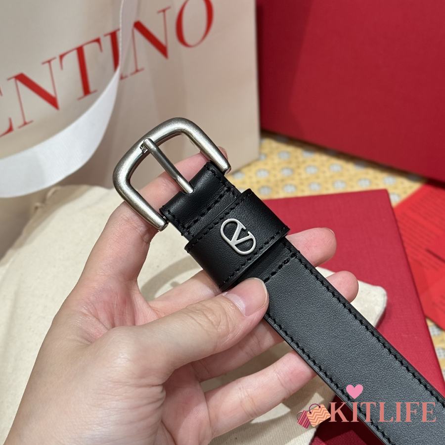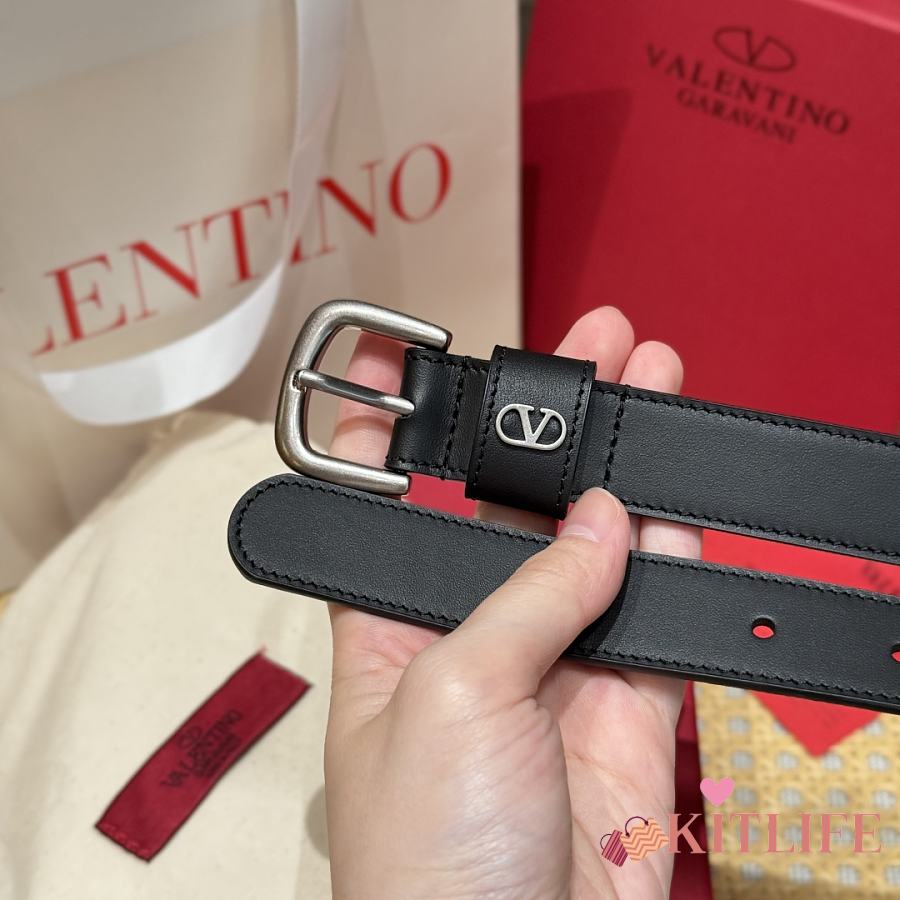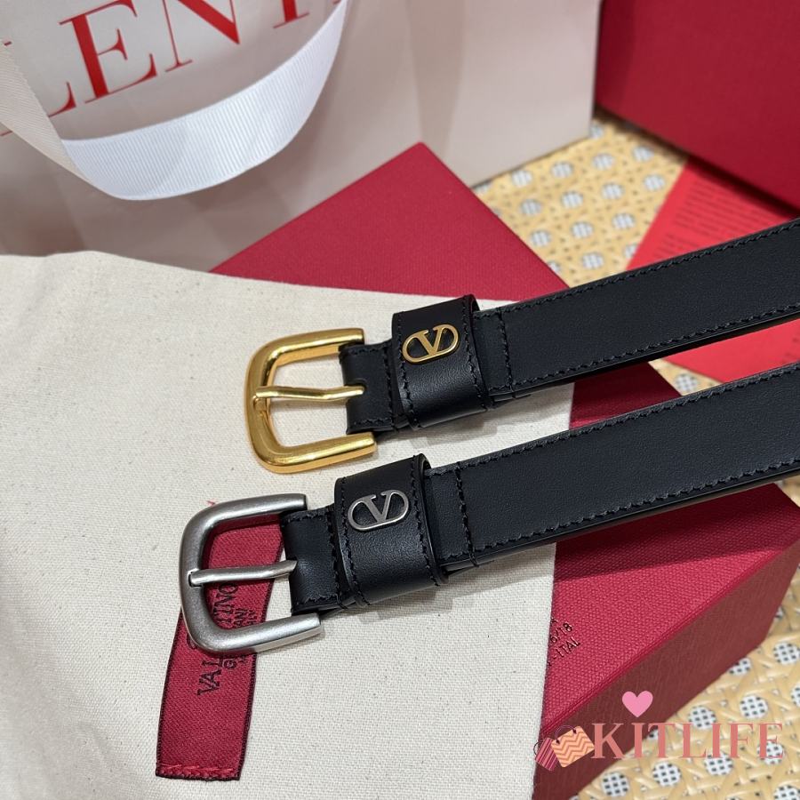 Kitlife Valentino Vlogo Signature Belt Black With Gold / Silver Hardware 2.5cm