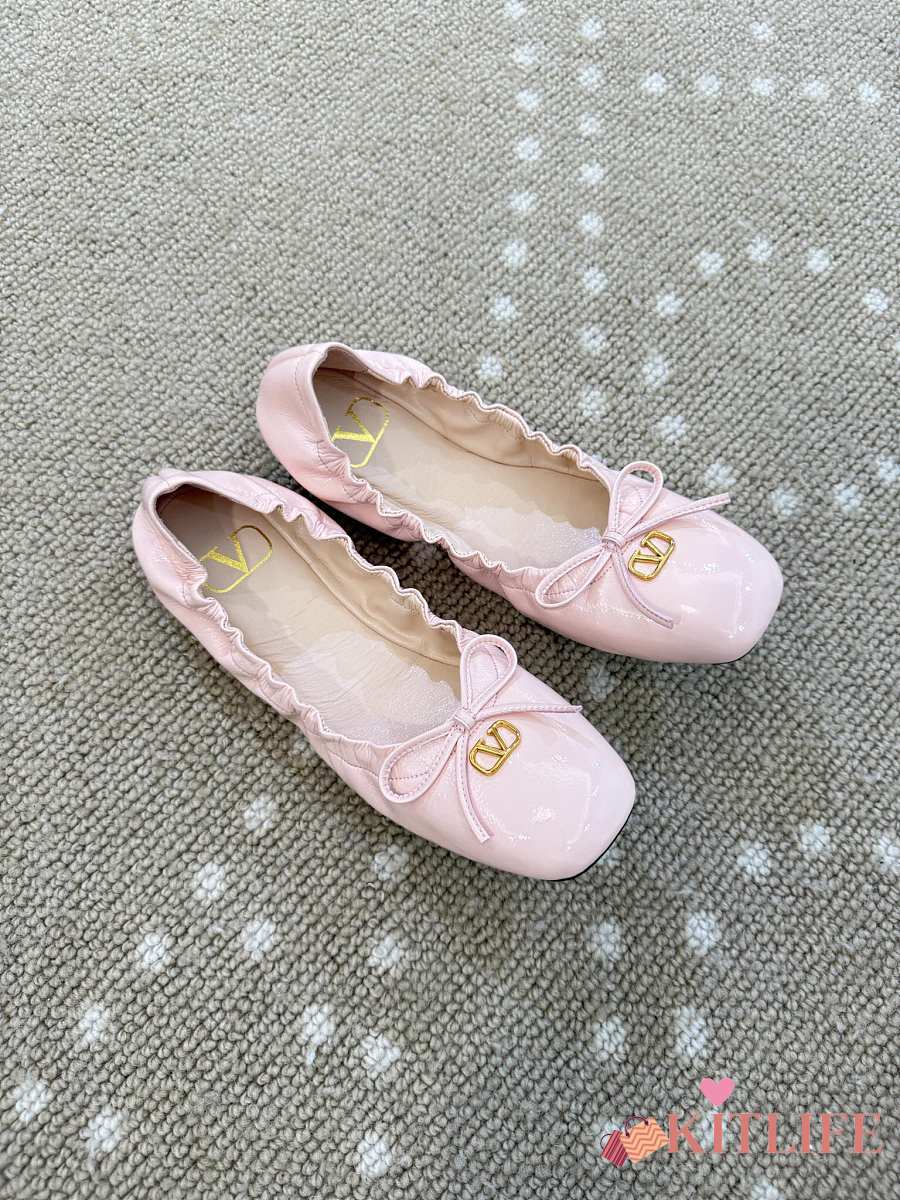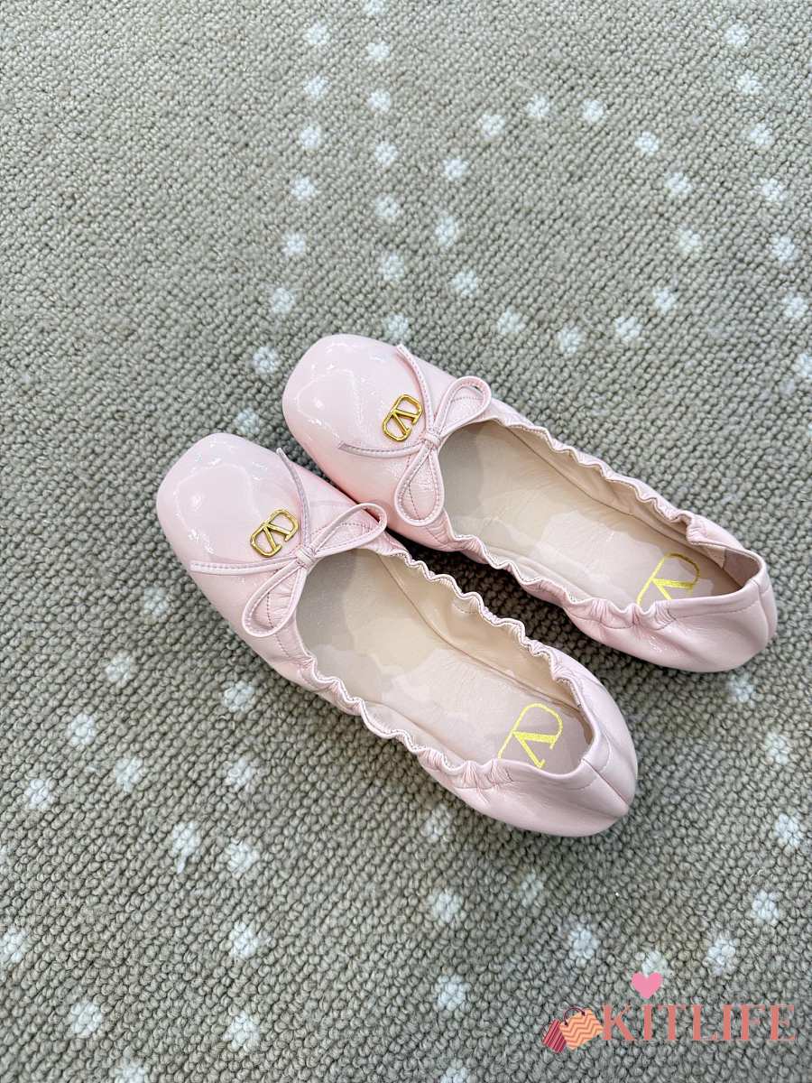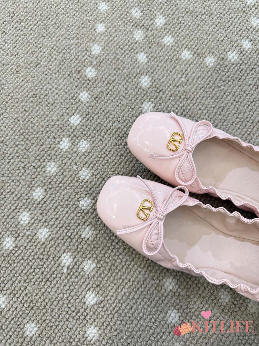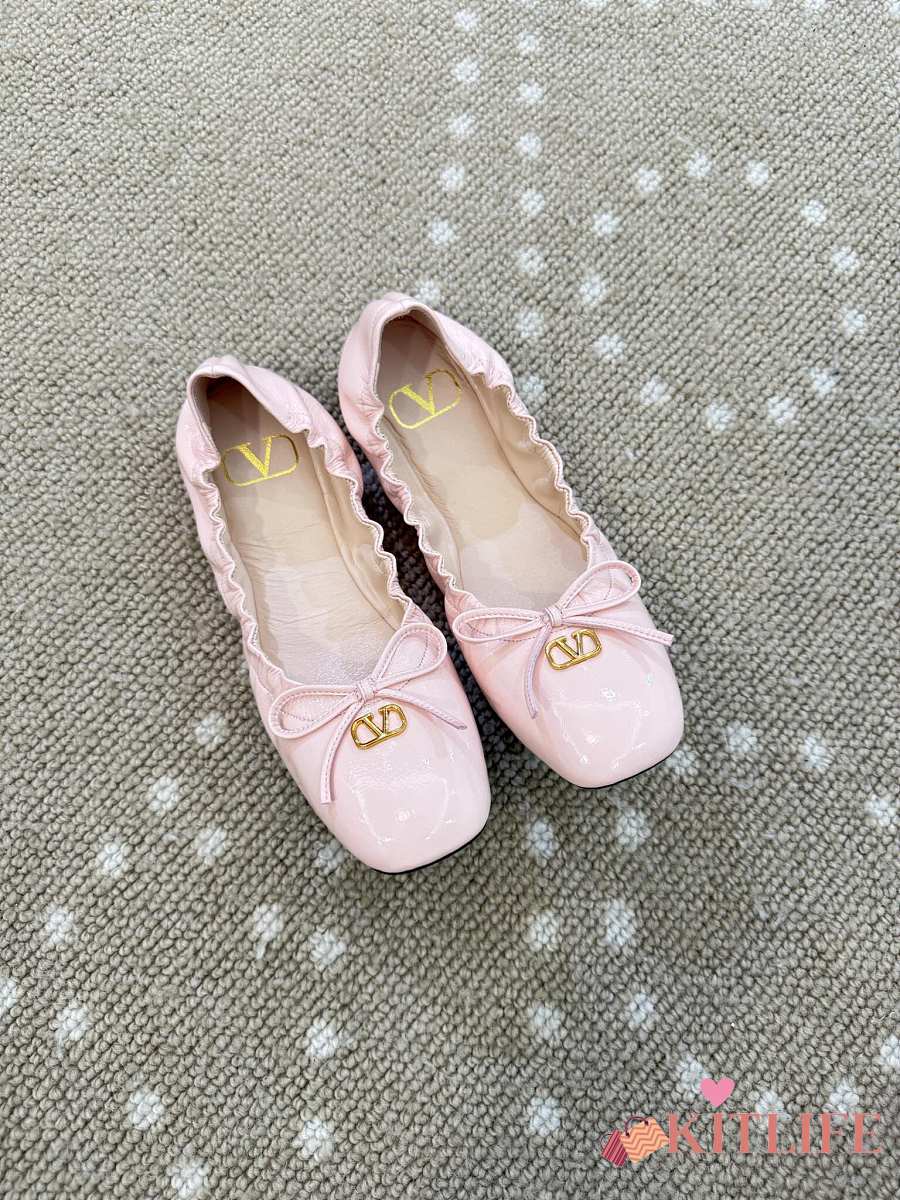 Kitlife Valentino Vlogo Signature Pink Patent Leather Ballerina Shoes