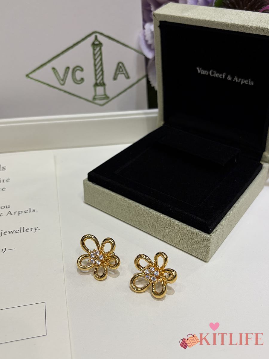 Kitlife Van Cleef & Arpels Gold Floral Earrings