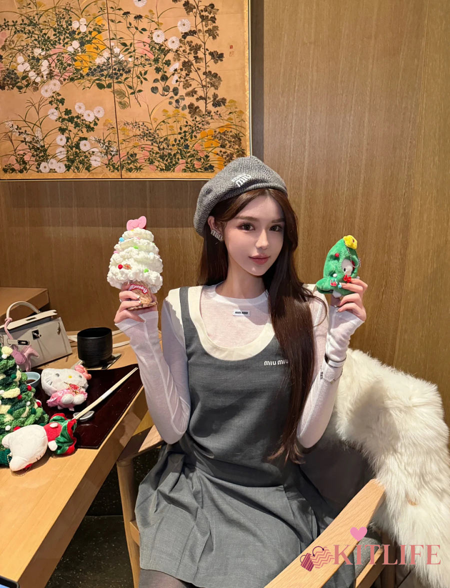 Kitlife Women's Grey Logo Chevron Wool Beret