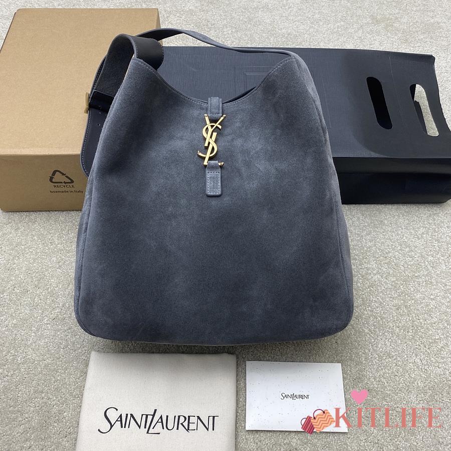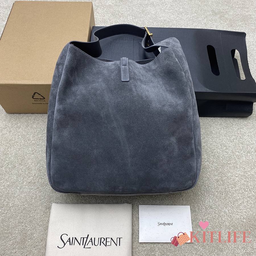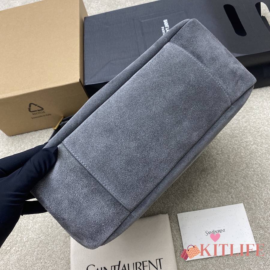 Kitlife YSL LE 5 À 7 Supple Large in Grey Suede Bag - 30x31x13cm